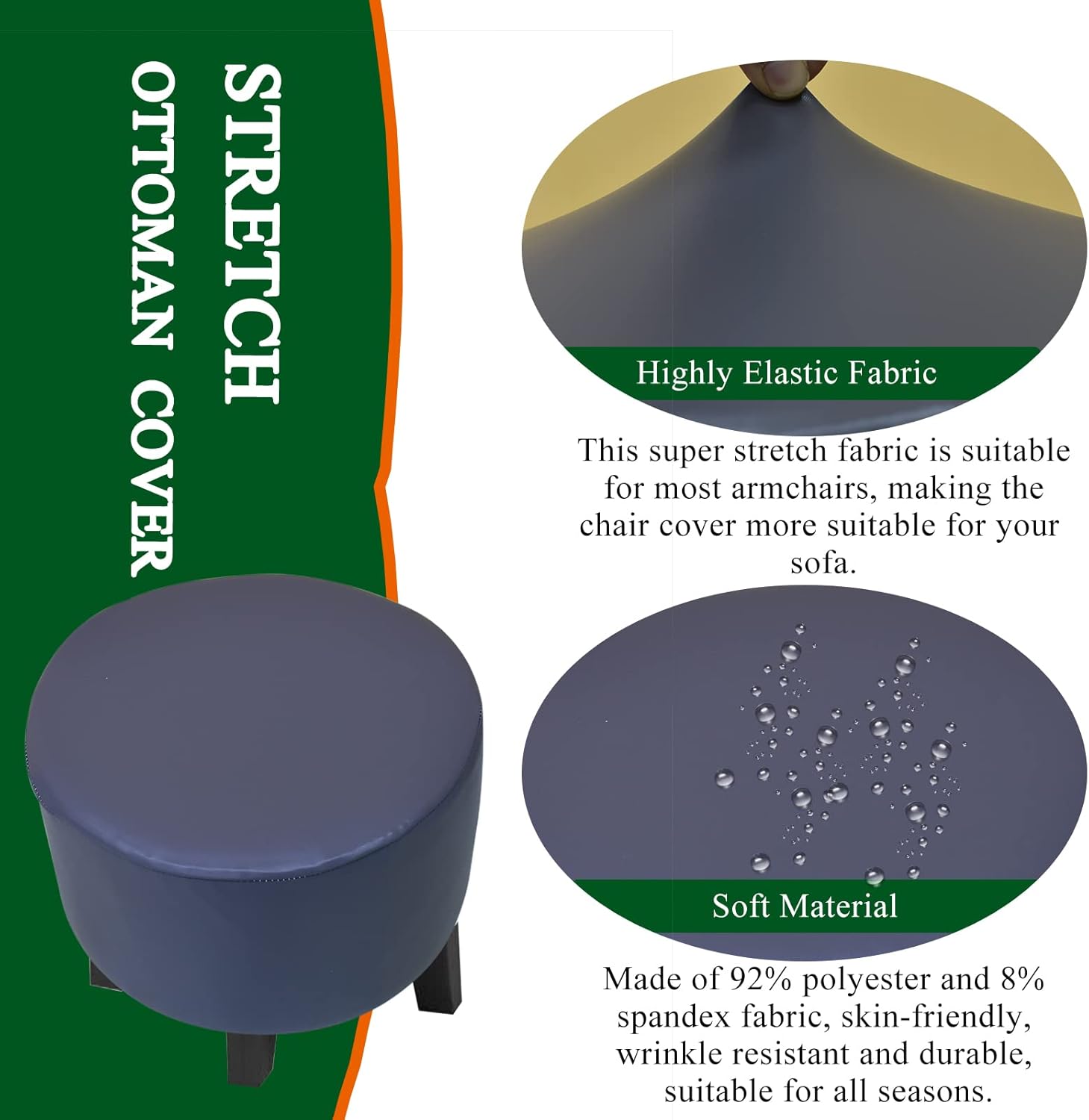 Features: -- Material: Crafted from durable and soft high stretch knitted jacquard polyester fabric.-- Universal Design: Suitable for most round ottomans, please kindly measure before ordering. -- Full Protection: Soft and comfortable, for homes with children and pets.-- Easy to put on and off, the elastic is free-floating inside the hem of the cover to allow you to adjust fullness around the perimeter of your furniture. There is elastic at the base of the furniture cover that allows the cover to stay snug to the base of your furniture.-- Function: Protect your ottoman from spills, stains and tearing.-- Non Slip: With elastic band closure, can be adjustable and easy to install.Specifications:Material: PolyesterColor: Shown as pictureSize: -- Medium Size: 20”-23" diameter, 17”-18" hight.-- Large Size: 24-29" diameter, 17”-18" height.-- X-Large Size: 30”-41" diameter, 17”-18" height.Care Instruction: -- Wrinkle free for easy maintenance. Machine washing in cold, do not bleach, tumble dry low and no iron.-- Warm reminder that always wash before initial use, especially for dark color covers.Package Included:1 x Footstool Protector CoverNote:1. Due to the light and screen difference, the item's color may be slightly different from the pictures.2. Please allow 1-2 cm differences due to manual measurement.