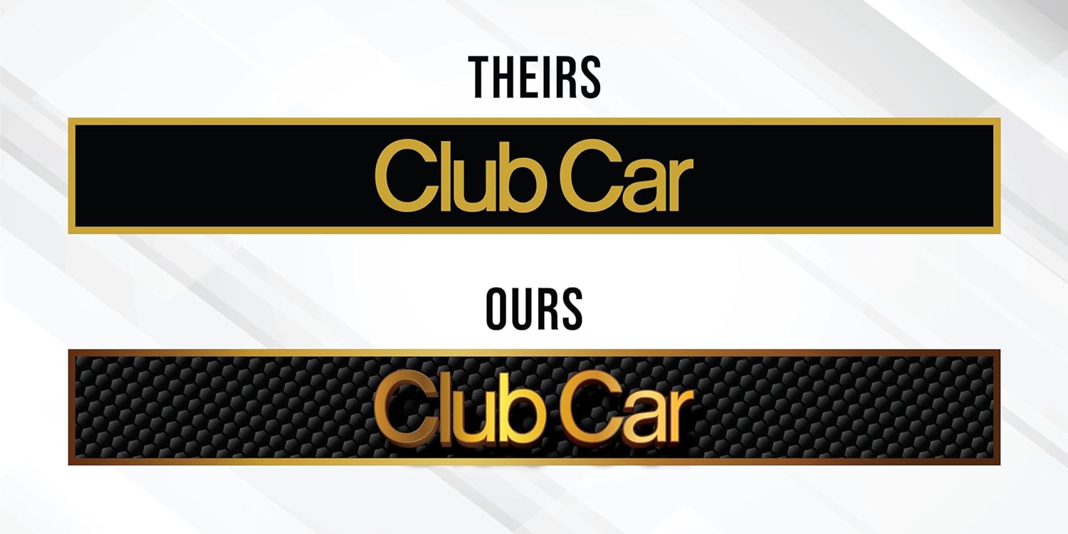 Elevate your golf cart's appearance with this premium custom front name plate designed specifically for Club Car Precedent carts. This personalized replacement decal emblem features eye-catching 3D text styled in the distinctive Club Car font, allowing you to add your unique touch to your vehicle. Measuring 15.75 inches by 2.25 inches, this name plate is precision-crafted in the USA to ensure a perfect fit and superior quality. Choose from multiple color options to match your cart's aesthetics or create striking contrast. Installation is straightforward, transforming your cart's front appearance with a professional, custom-branded look. This durable name plate serves as an ideal replacement for worn factory emblems or as an upgrade to personalize your Club Car Precedent. Make your golf cart stand out on the course with this distinctive customization accessory.