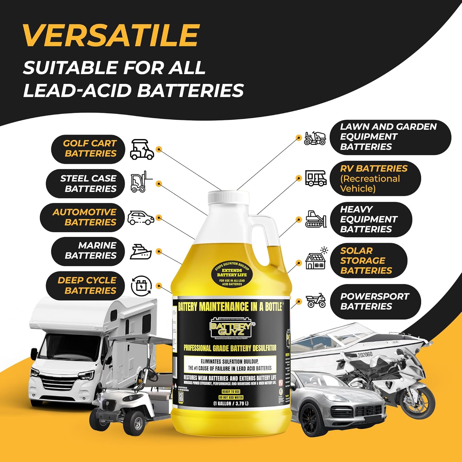 | Included Components | 1 Gallon Jug Battery Desulfator Solution, Gloves and Funnel |