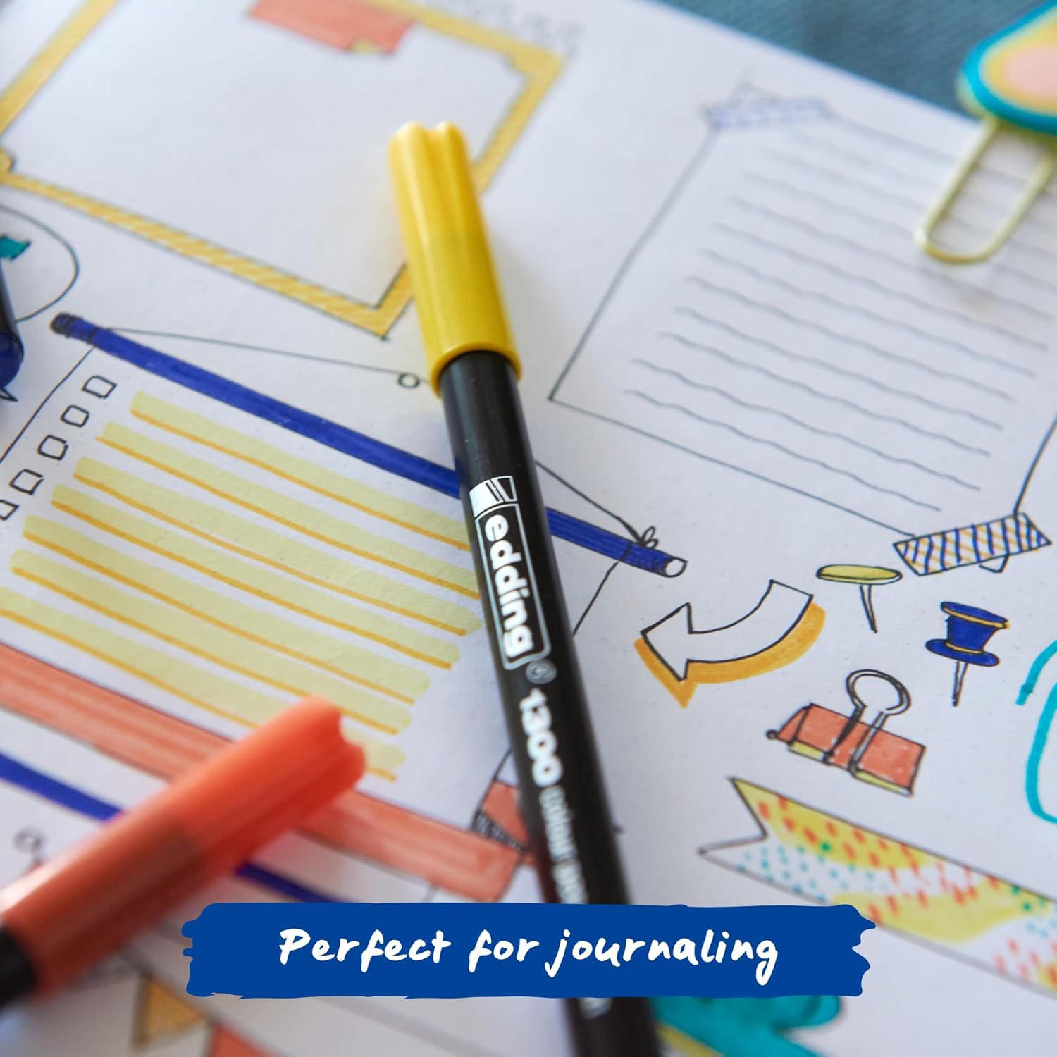 Fibre pens with a medium round tip; 2 mm stroke width for writing, sketching and layout designs on coloured paper in light tones. Can be used for writing on greetings cards, postcards and making notes. Available in 40 beautiful, vivid colours, ranging from light and delicate to strong and bold; an array of colours to brighten up any project. The water-based ink is highly opaque and doesn't bleed through the paper. Whether at school, in the office or at home, the lightfast ink means that your creations will stay sparkly over time. The robust, high-quality nib won't fray and delivers an even flow of ink which prevents smudging, making it ideal for laying down fine lines as well as colouring in larger areas. Also available with a shimmering metallic effect (the edding 1200 metallic) and in the form of a brush pen with a flexible tip (the edding 1340 brush pen). High-quality branded product. Store horizontally. Made in Germany.