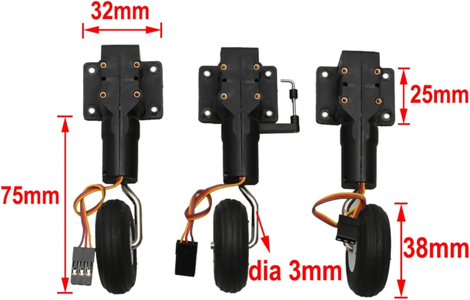Specification:- Item name: electronic retractable landing gear- Wheel diameter: 38mm- Steel wire diameter: 3mm- Weight:about 110g/set- Metal steering , (front wheel is plastic steering)- Used for rc model airplane, diy model drone modificationTwo Types for Your Reference:(more details refer to picture shown)- vertical wheel- horizontal wheelNote:Manual measurement the size may have slightly measuring deviation. Package include:1 set x Landing GearYou can contact us at any time to learn about the latest prices and the most complete products.We will be online 24 hours. If you feel that the product you received does not achieve the desired effect, please contact us in time, we will do our best to help you solve various problems