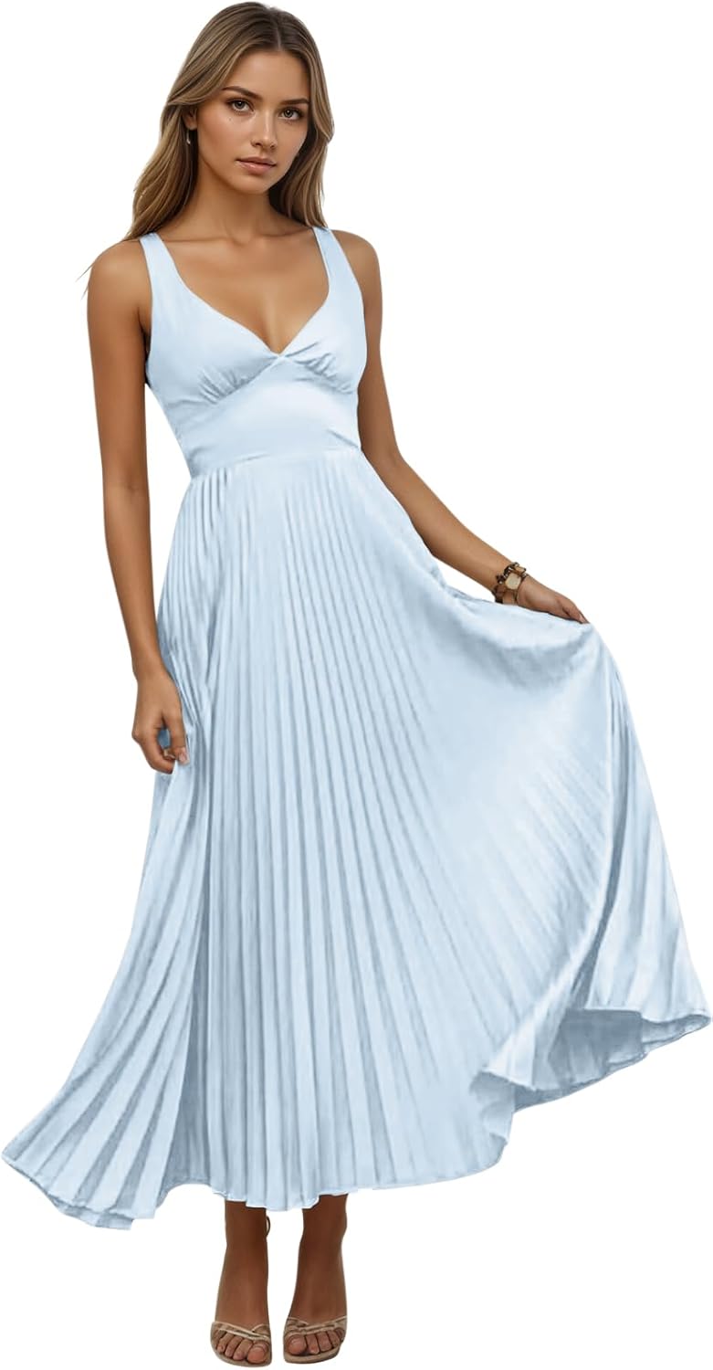 Item Description: This pleated satin v-neck midi dress is very cute and comfortable. The fabric is satin with soft and straight features, which is mostly used in special occasion dresses such as Bridesmaid,Formal,Prom,Cocktail,Evening,Party,Wedding Custom Made: Dresses can be made according to your measurements with no more charges,the measurements we need is:1.Bust 2.Waist 3.Hips 4.Hollow(or Shoulder) to Hem 5.The height of your high heel shoes 6.Shoulder to Bust.after you place the order,please send us your measurements and order id Product Name: Elegant A-Line Pleated Satin Bridesmaid Dresses Long V-Neck Midi Dress for Women Occasion:Bridesmaid Prom Formal Coktail Party Wedding Evening Item Type:V-Neck Satin Bridesmaid Dresses, Tea Length Formal Dress with Straps,A-Line Pleated Midi Wedding Guest Dress Waistline:High Waist Decoration:Pleats Fabric Type:Satin Back:Lace up Back Train:No Dresses Length:Tea Length Silhouette:A-Line Neckline:V-Neck Sleeve Length:Sleeveless