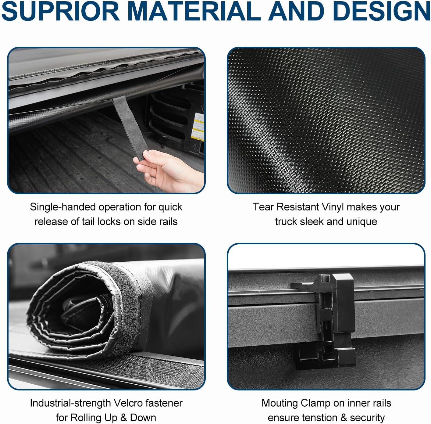 | Manufacturer Warranty Description | Warranty The Tonneau Cover carries a three-year warranty against on aluminum components, clamps, bows, hardware. WARRANTY CONDITIONS This warranty provides coverage against defective materials or workmanship. The warranty is void if the product has been damaged by accident, unreasonable or improper use, neglect, improper service/installation/removal, modifications, acts of God, normal wear and tear or other causes not arising out of defective materials or workmanship. Interference of this product with other installed accessories or trailers is not covered under this warranty. Consequential and incidental damages are not covered under this warranty. THE FOLLOWING CONDITIONS WILL VOID THE WARRANTY Wind whip damage - Tarps must be secured at all points when the vehicle is in motion. An unsecured tarp will flap, resulting in damage to the fabric. Improper cleaning - Do not use vinyl conditioners that contain silicone (i.e. Armor All) because they will dry out and crack the vinyl over time. Overloading of cargo - Cargo should not touch the tonneau at any point. Protrusions in the tarp will stress the fabric. Cargo may shift while traveling and cause it to push against the fabric or panels and damage it. PERFORMANCE The warranty applies to the original consumer/purchaser. Warranty coverage starts from the date of purchase. Provided all warranty conditions are met, we will either repair or replace the product or component. |