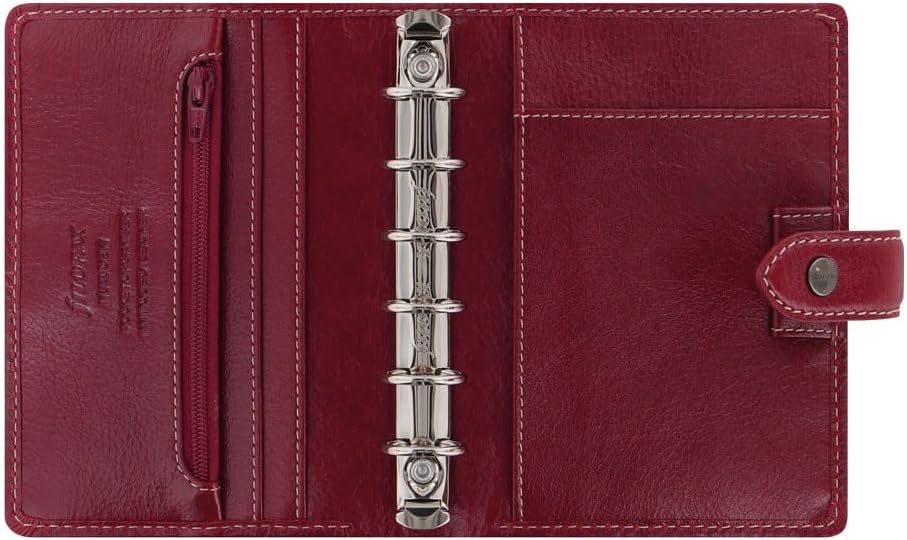 The epitome of relaxed style, the Malden Organizer is set apart by its tactile, vintage-look, full-grain buffalo leather and contrast stitching. A contemporary take on a retro design, this premium range has a rustic and casual charm on its own. Features a six-ring binder, luxury cotton cream indices, assorted notepaper, ruler/page marker, to-do lists, contact sheets, and multilingual, cotton cream week-on-two pages calendar diary. Malden includes one notepad pocket, two leather pen loops, three vertical slip pockets, and four card pockets. Compatible with additional Filofax refills and accessories available in Pocket size. Stitched edging with rounded corners and strap closure round out the meticulous design of the Malden Collection. Over the years, the Filofax Organizer has evolved from a simple loose-leaf system into an indispensable everyday accessory. The Filofax logo promises authenticity and the finest craftsmanship. It's a hallmark of impeccable quality, trusted worldwide, since 1921.