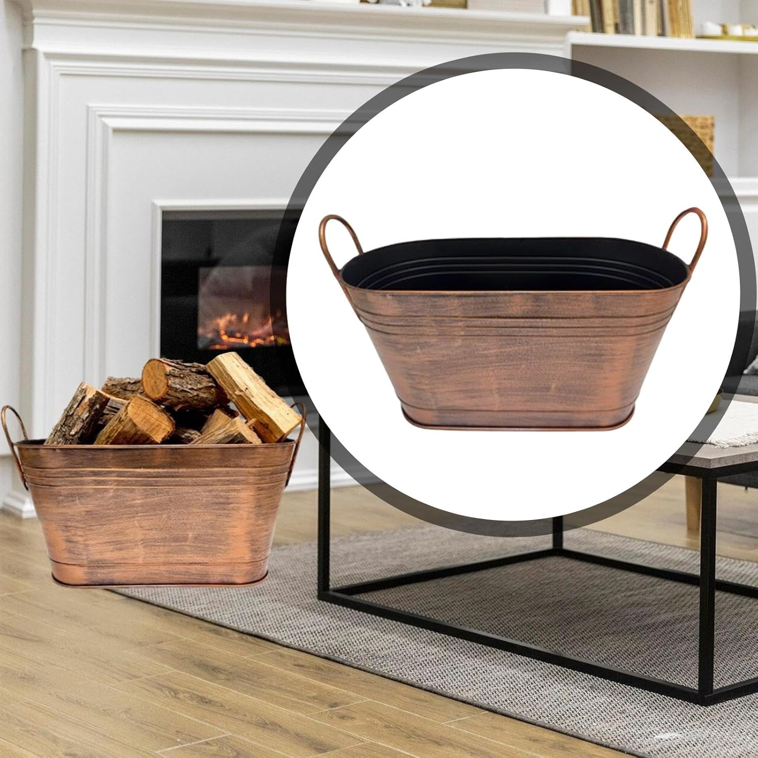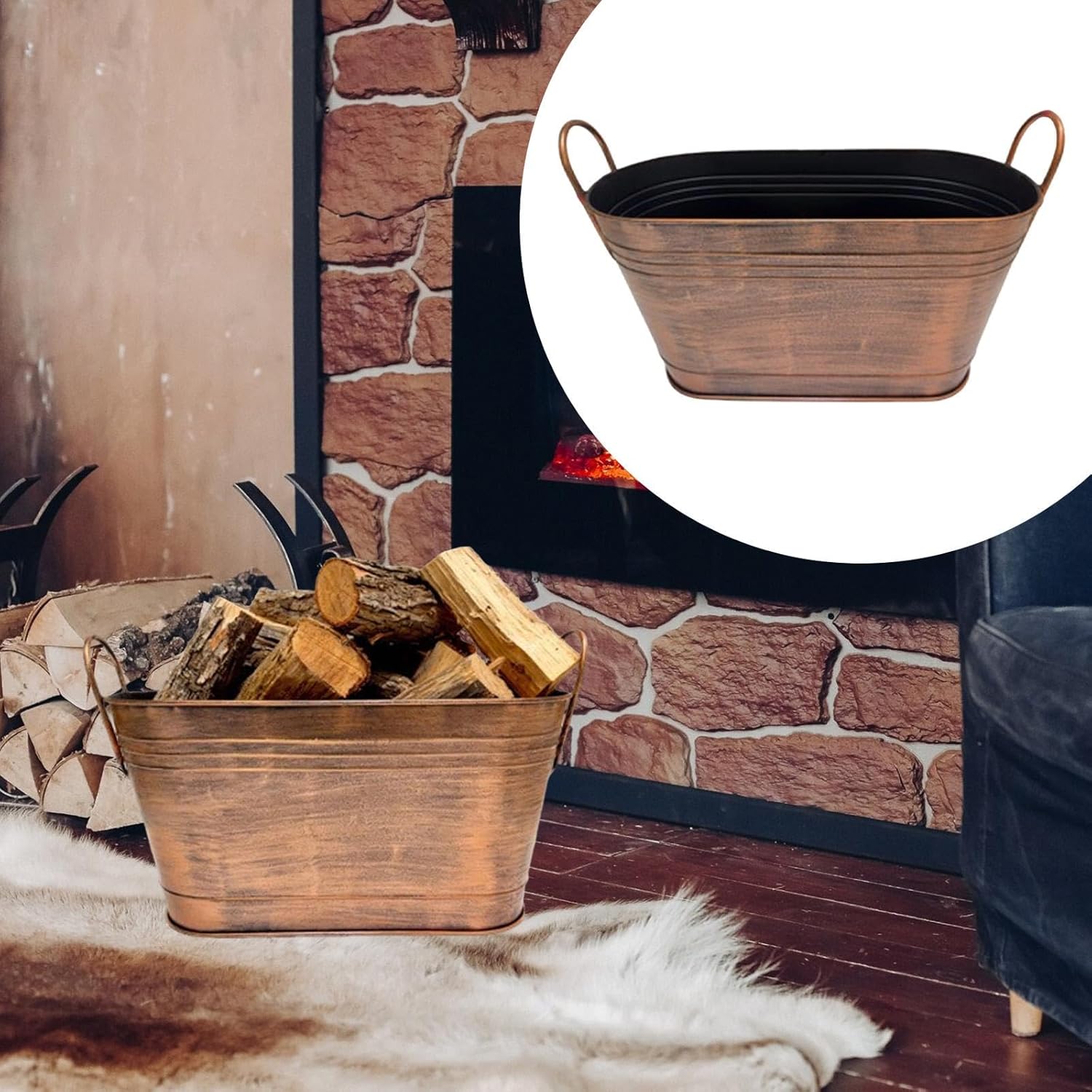 Description: - 【Large Capacity】: Spacious easily stores a generous amount of firewood, , or fireplace tools to meet daily household needs - 【Durability Construction】: Crafted from premium metal, this sturdy log bucket resists deformation and remains reliable and stable even after long term use - 【Farmhouse Finish】: Classic retro design coating is scratch resistant and rustproof, blending seamlessly with various home décor for both practical and decorative - 【Versatile Use】: Firewood holder is ideal for holding wood or , it also serves as storage for gardening tools, miscellaneous items, or as a stylish planter bucket, adaptable to multiple purposes - 【Easy Handling】: Equipped with sturdy handles for convenient carrying and moving; effortlessly lift even when fully loadedSpecification: - Material: Metal - Color: As Picture Shown - - Size Chart:Top Length x Height 54.5cmx27cm/21.46inchx10.63inchBottom Length 45cm/17.72inchPackage Includes:1 Firewood Bucket Note:Please allow slightly errors due to manual measurement and different monitors.