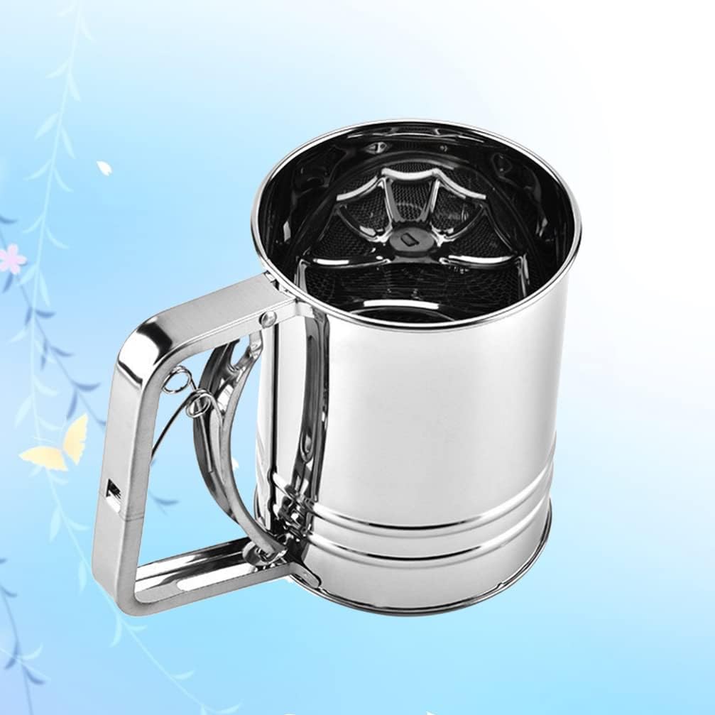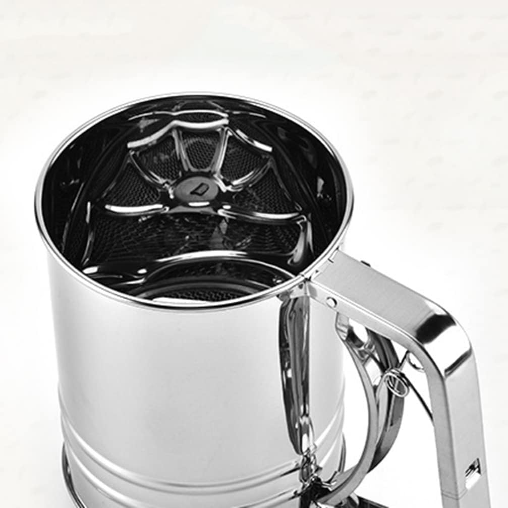 LEIXIUSMDescriptionFlour Sifter Stainless Steel Flour Strainer Fine Mesh Sieve Sugar Shaker Cake Baking Powder with Hand Press for Cakes Pastries Pies Cupcakes Desserts KitchenFeatures- Color: Silver- Material: Stainless steel- Size: Approx. 13.3 x 9.6 x 9.6cmPackage Including1 x Flour Sifter