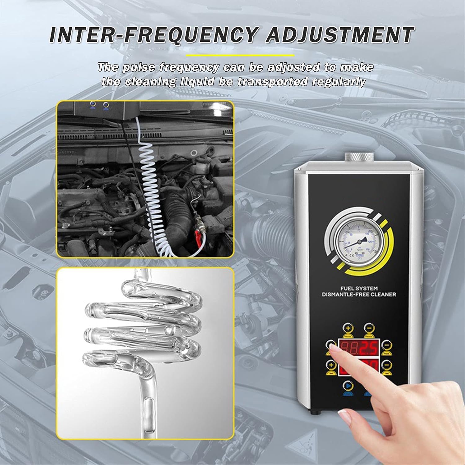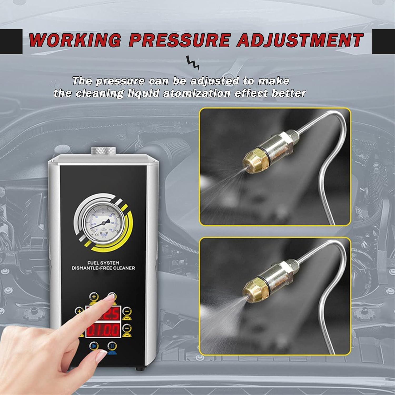 The air intake system is cleaned to reduce carbon deposits, increase the oil-gas mixture ratio, and idling smoothly. The product can be adjusted by pressure to make the cleaning liquid more effective. Purpose: No need to dismantle and clean the fuel system Size: 27x24x37.5 (cm) Power supply voltage: 12 (V) We always pay attention to your life needs, and strive to make your daily life safer, more convenient and enjoyable. Contact us by email and send the ideas of the products you need. We have a strong design and manufacturing team as your support. We Will listen to the suggestions of each customer, and improve our products to the products you rely on.