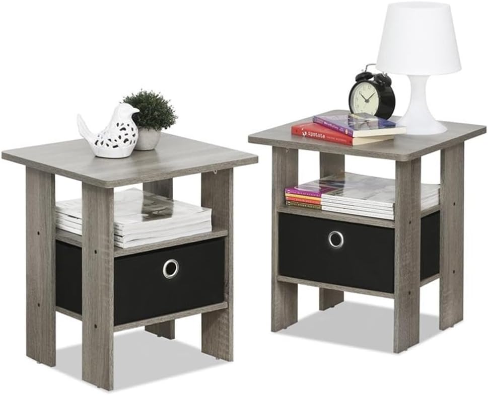 Create the prefect living room space with this FURINNO end table with bin. This end table will sit perfectly next to your chair or sofa and both beautiful and functional. Featuring one fabric drawer is perfect for keeping DVDs and remotes corralled, while an open shelf makes a marvelous spot to put a lush potted succulent on display. Rounded edge design prevents potential injuries. This storage end table is easy assembly with step by step instruction. Care instructions: wipe clean with clean damped cloth. Avoid using harsh chemicals. Pictures are for illustration purpose. All decor items are not included in this offer.