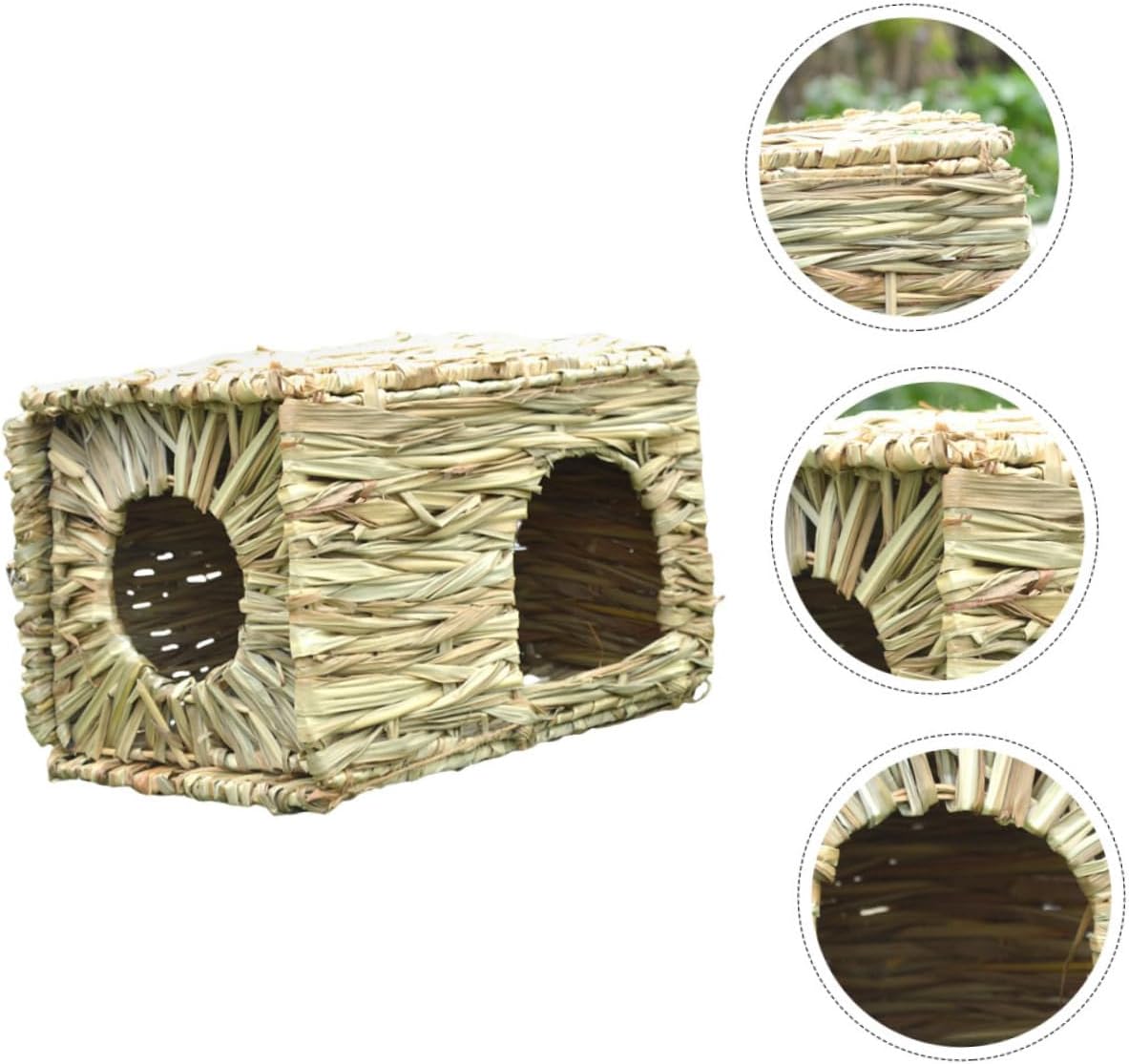 Package List 1 x pet nest Features -Color:Olive Green animal hut bunny house -Size:38.00X28.00X25.00cm/14.93X11.00X9.82in rabbit home -Material:Reed Household reed Nest -Made with reed material, it can be and as a material for pet teeth grinding. A pet house for rabbits. A good to your friends, family and people have small pets bunny beds. -The reed woven nest can keep warm in winter and cool in summer, so it can protect pets. Provide private space for your small pets, their sleep quality grass house for rabbits. -Woven nest is also the grass that is to chew and provide hours of entertainment for your pets rabbit hut. -With the and hand-woven, this woven nest is for the pet to sleep or play inside and easy to bunny cage. -Natural reed bed is suitable for small pets can be picked up and carried anywhere. Move your napping pet from room to room without disturbing his sleep bunny hideout.Goods Informationrabbit houses Multi-purpose animal house, eating, drinking, sleeping, sports and many other uses, make reasonable use of space.animal house This woven nest is suitable for hamster, guinea-pig, rabbits and other similar pets.large grass house for rabbits This nest give your lovely pet a comfortable place to rest and play