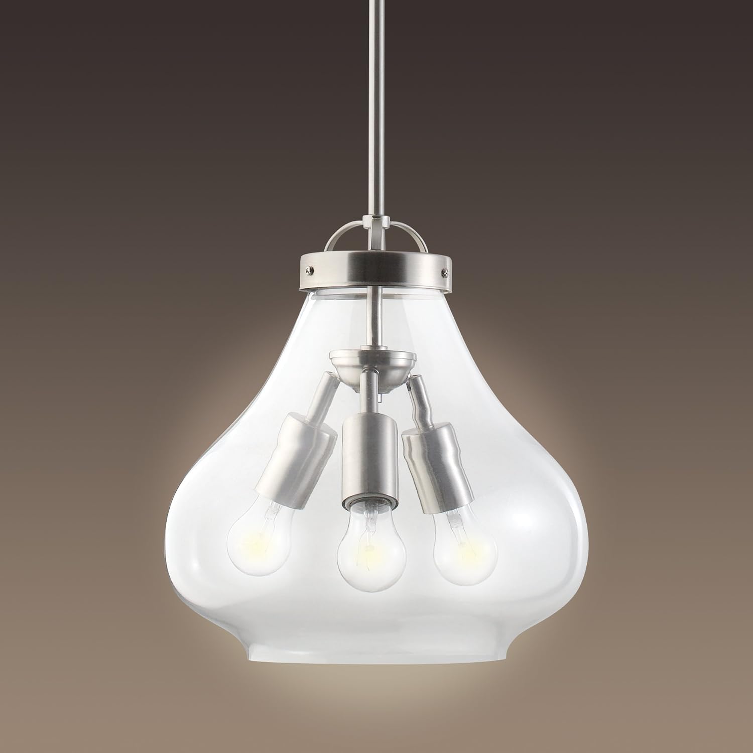 Evoking warmth and ambiance, this industrial inspired Globe Electric three-light mini pendant adds a timeless accent to any decor. The canopy and socket boast a Brushed Steel Finish, while clear seeded glass creates a comforting glow. Install this fixture in a variety of spaces like foyers, bedrooms, kitchens, office reception areas, restaurants, hotels or shops. Wherever you place it, you will enjoy the fixture's soft light and industrial look. Bring out the designer in you. Globe Electric mini pendants are a quick and easy fashion upgrade to refresh your residential or commercial decor. The handcrafted nature of the glass shade will produce minor differences in design and sizing. Subtle variations will occur from piece to piece, adding to its unique qualities.
