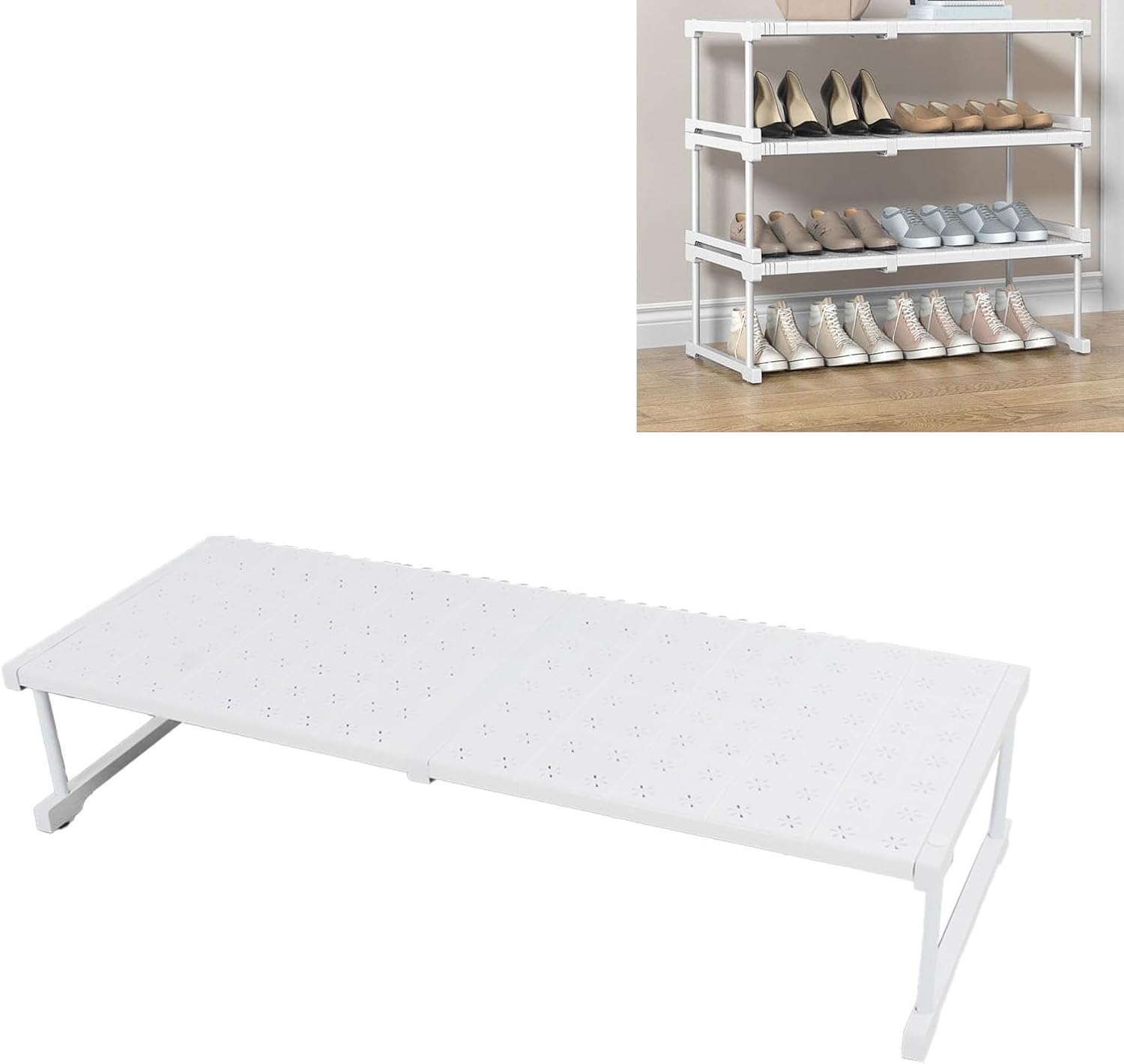 This expandable closet shelf storage rack transforms cluttered spaces into organized . Constructed from durable carbon steel and plastic, this versatile storage solution boasts an impressive load capacity of approximately 121 pounds, making it ideal for storing heavy items with confidence. The adjustable telescopic design extends to fit various cabinet and closet sizes, with of 16.5 inches wide and 8.7 inches high. Installation is refreshingly simple and requires no additional tools, allowing you to set up your storage system in minutes. The layered divider configuration helps you categorize and separate items efficiently, so you can quickly locate what you need when you need it. Perfect for kitchens, bathrooms, pantries, and closets, this space-saving rack maximizes vertical storage while keeping your belongings neatly arranged. The set includes 15 accessories to customize your organization system. Whether you're storing , supplies, toiletries, or pantry , this expandable shelf adapts to your specific storage requirements and helps maintain a tidy, functional space.