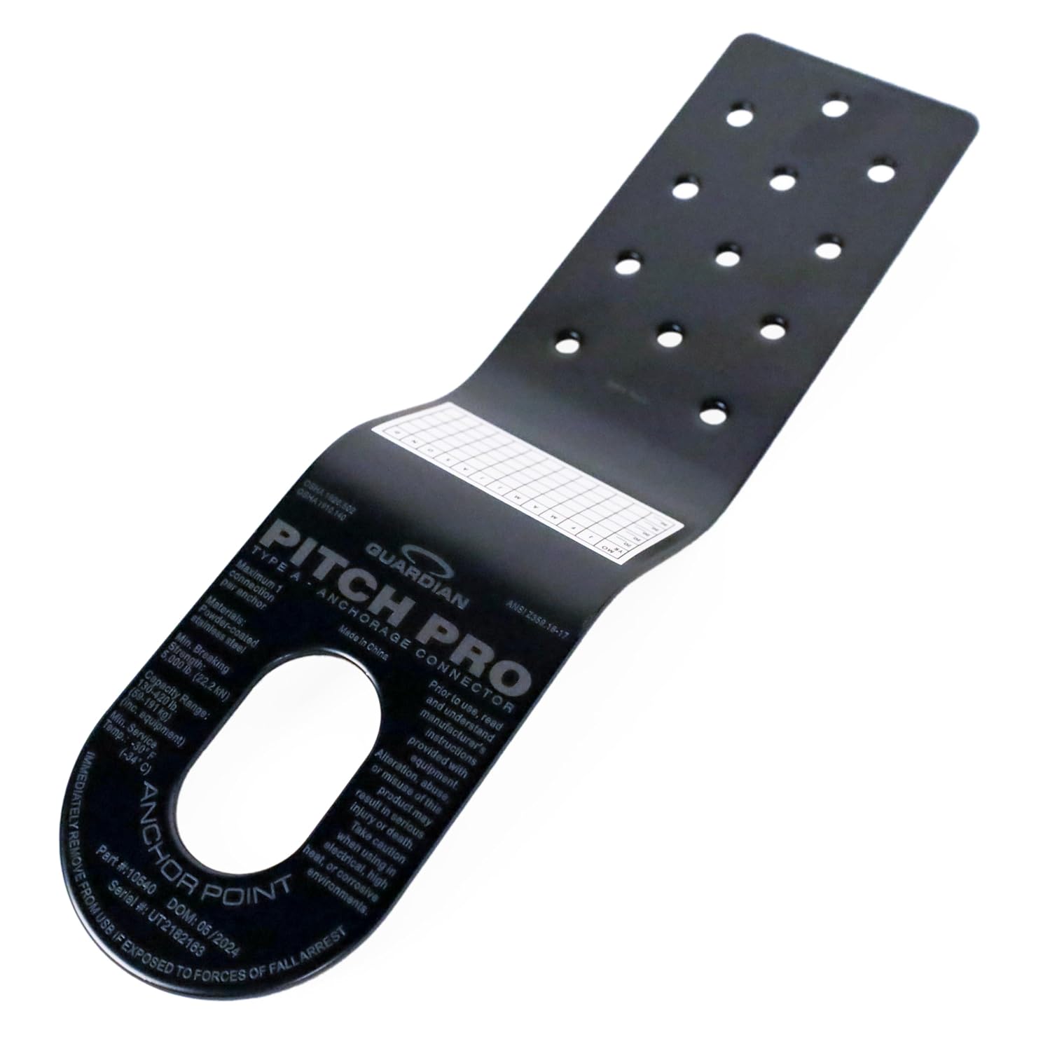The Pitch Pro is a premier fall protection anchor designed for sloped-roof asphalt shingle construction. It is the perfect solution for both new and existing construction, and its low-profile installation makes it an excellent choice for finished roof tops. The oversized connection point makes attaching and detaching easy and bind-free. Made from robust powder-coated steel, the Pitch Pro resists damage from repeated installations, and ensures the longest possible lifespan.