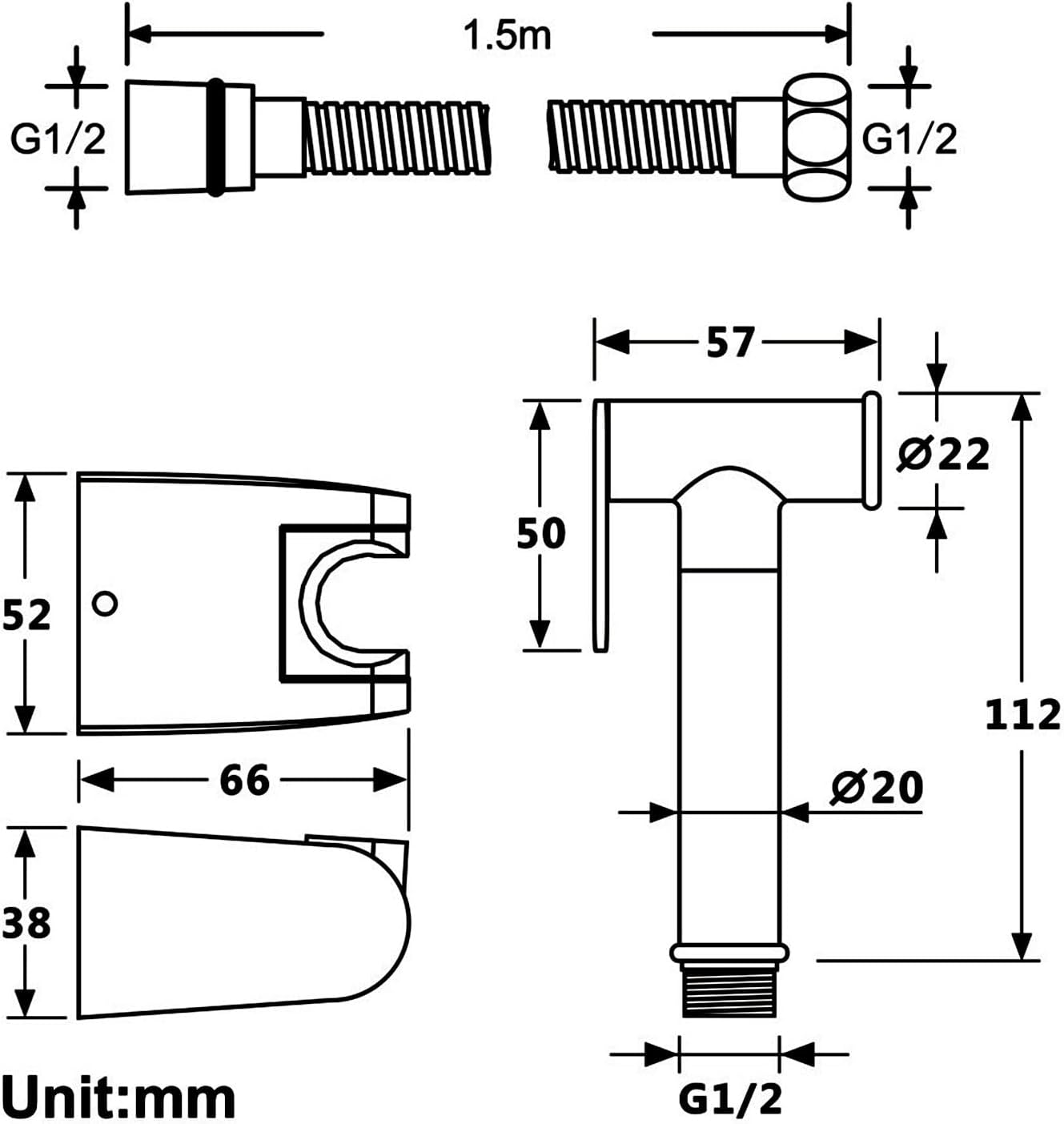 Product name: Handheld bidet sprayerProduct category: Women's bidet faucetMaterial: Stainless steelCraftsmanship: Chrome, brushedColor: Black, brushedWorking temperature: 0~100Nominal pressure: 3~4Style: Modern and simpleInstallation method: Wall-mountedUse: Women's bidet flushing, flushing toilet and toiletMaterial:Spray faucet: BrassShower hose: 1.5m stainless steelSpray bracket: ABSNote: You may need to use it a few times to understand the pressure and angle required for the bidet spray head before you can adapt. Don't get discouraged after using it a few times, give yourself some time to adapt to the operation of the bidet.