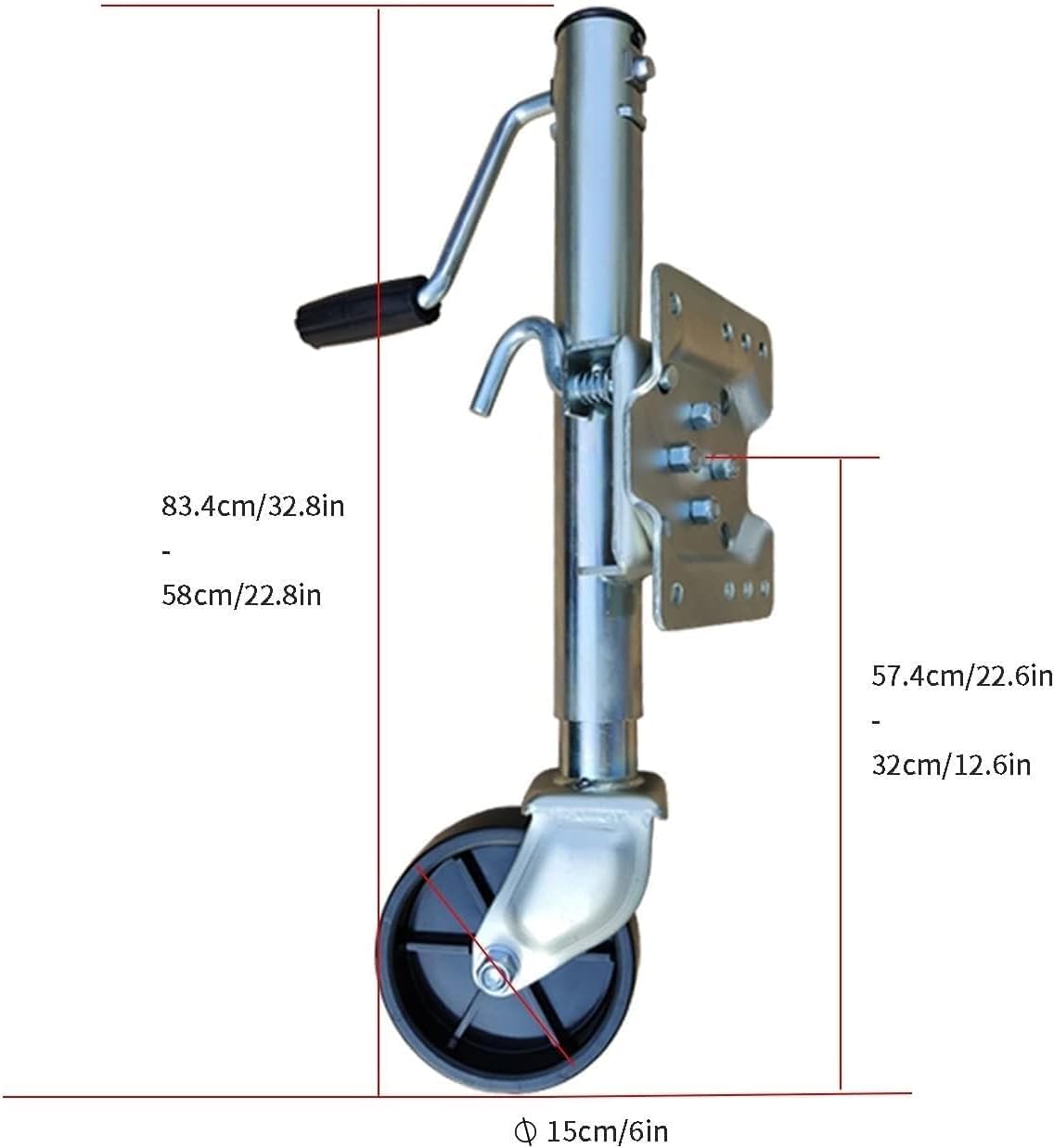 【This powerful boat jack is ideal for a variety of applications, whether you are lifting a travel trailer, or a utility trailer, it provides the strength and stability you need. 【Basic parameters: Product name: Trailer jack/trailer leg guide wheel/guide wheel/heavy-duty folding guide wheel/ folding system with mounting plate Product weight: 16.5 lbs (7.5 kg) Material: steel Capacity: 1200 lbs (540 kg) Travel: 10 inches (25.4 cm) Lifting height: 10'' (25.4 cm) Wide range of uses: The telescopic guide wheels can lift your boat or recreational trailer, the foldable design is convenient for driving and parking, and they are widely used to support various boat trailers, yacht trailers, campers. Product packaging: 1* Foldable trailer jackurs 【Removable and swivel trailer wheel, high-quality galvanized surface, 15cm solid rubber wheel, including all necessary mounting hardware, can be installed on 10cm * 11.4cm trailer frame, trailer jack is designed for marine and public trailers 【After-sales service: 1. Thank you for visiting our store, we hope there is always a trailer jack wheel that suits you, we will help you before, during and after your purchase. 2. We provide you with high-quality beach boat trailer jacks and other wheel accessories in various styles. If you have any questions, please contact us and we will respond to you within 24 hours.