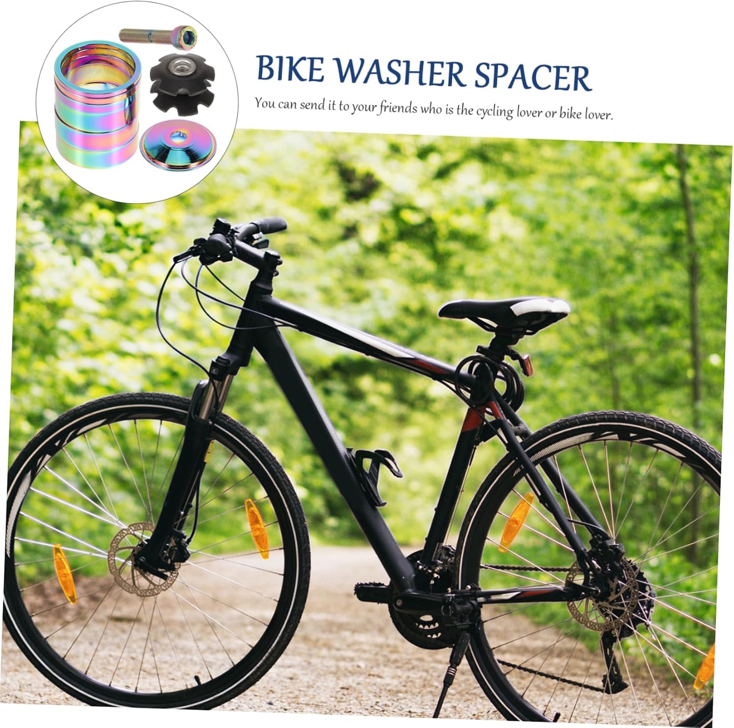 Package Include 6 x Spacers 1 x Screw 1 x Hanging Core 1 x Cap Features -Color:Assorted Color small stem spacer -Size:3.40X3.40X1.00cm/1.34X1.34X0.39in headset spacer -Material:Aluminum alloy bike headset gasket -More hard than aluminum alloy headset spacer, and lighter than aluminum alloy spacer bike washer spacer. -You can send it to your friends the cycling lover or bike lover bike stem spacer. -Fine cutting, smooth edge, it fits of the road bicycles, delicate texture and to use stem spacer. -Very strong and not easy to wear and tear, you can rest assured to use it for a long time professional washer spacer. -Made of and sturdy aluminum alloy material, which is , wear resistant and bicycle headset gasket.Goods Descriptionsmall stem spacer Whether you're looking to your performance on the road or trail, these spacers can help to enhance your cycling experience and make your rides more enjoyable.washer spacer With their lightweight design and construction, our headset spacers are the accessory for anyone who wants to take their cycling to the next level