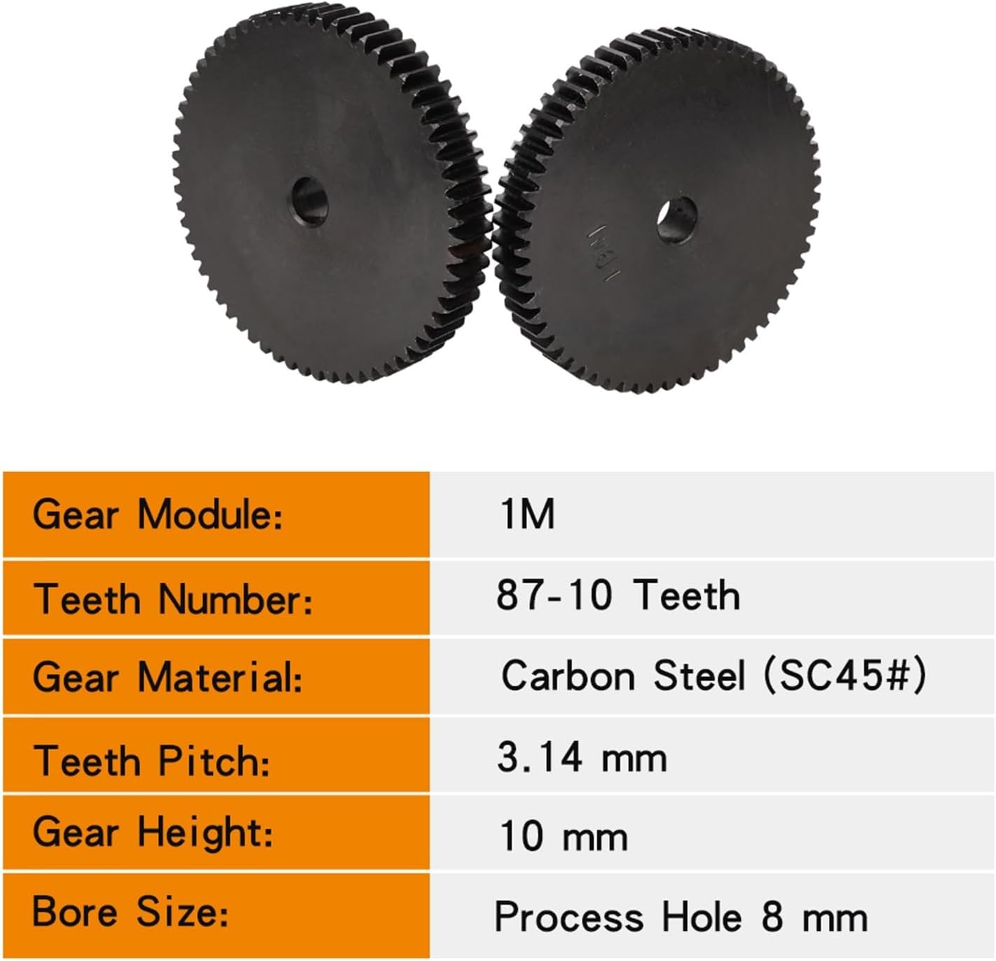 1. Not easy to wear, durable performance. This gear is a good industrial alternative accessory.2. Widely used in conveying, hardware, agricultural equipment, printing machinery, mechanical transmission and so on.3. The contact between the gears is firm to ensure the normal operation of the machine and good carrying capacity.Specification:1.Product Name:Cylindrical Gear2.Model: 1M-12T-150T3.Inner Bore :Process Hole4.Material: SC45#(Carbon Steel)5.Surface Treatment: Blackening6.Gear Height:10 mm7.Package Include:Gear *1 piece