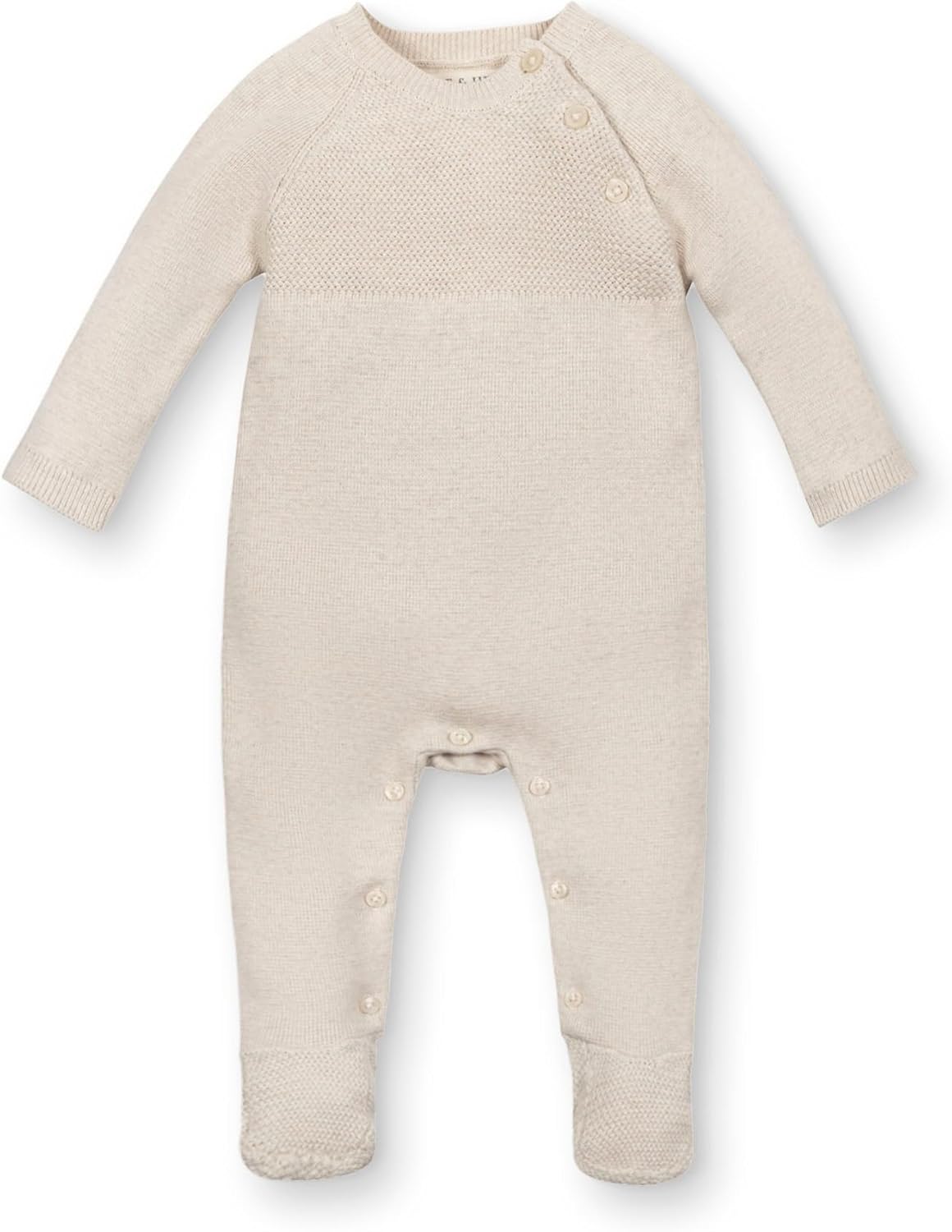 This unique sweater romper stands out with its soft, subtle plaid intarsia design. Made from our luxuriously soft organic cotton, it features a button front closure and front patch pockets. The stretchy rib trim ensures easy and comfortable dressing. A wonderful baby gift, it's 100% organic cotton (excluding trims) and GOTS-certified organic. Easy to dress with its center front button closure, it's not intended for sleepwear and is machine washable.
