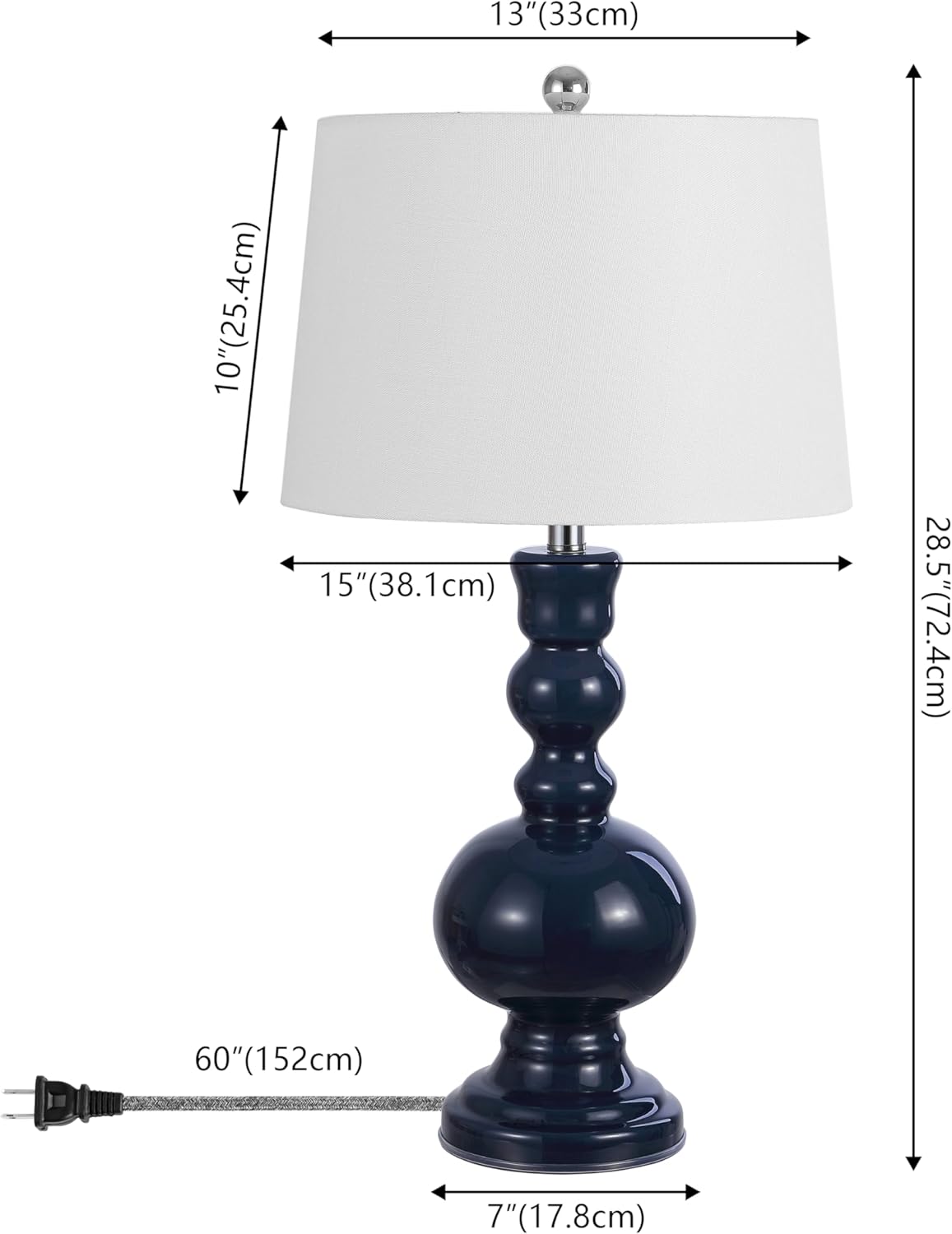 Bookend a shelf or console with an eye-catching pair of these beautiful blown-glass table lamps. The vibrantly hued glass bodies are gently curved, and the crisp white shades finish these lamps in classic style. A classic Nantucket Navy hue makes this set of two the perfect pair for infusing color into your home decor.
