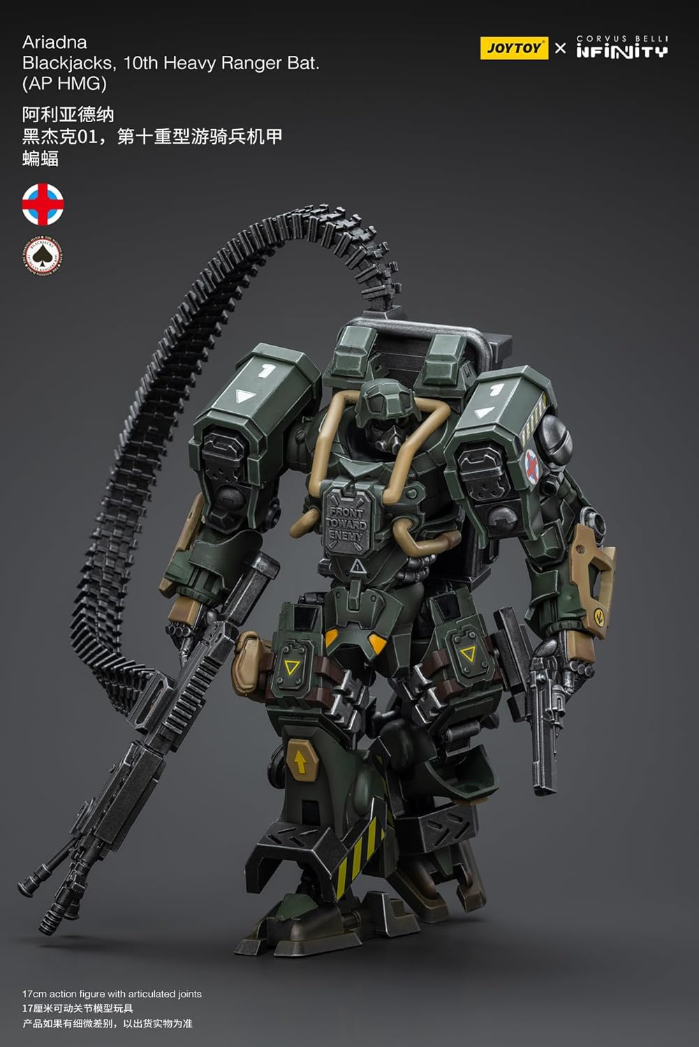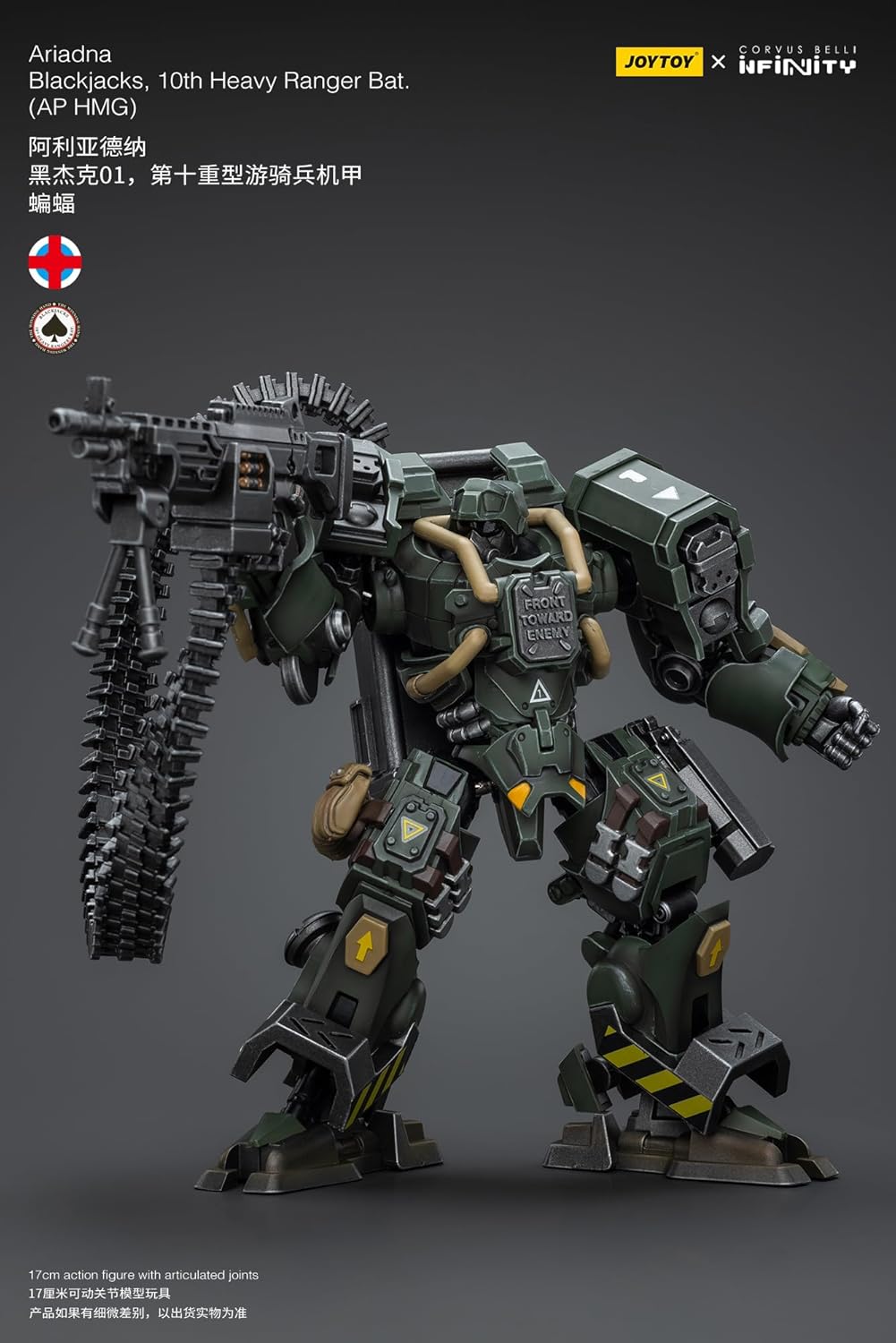 From Joytoy Beijing Tech Devco. Introducing the JoyToy Infinity Corvus Belli Ariadna Blackjacks, 10th Heavy Ranger Bat (AP HMG) figure - a stunning addition to any collector's arsenal. This meticulously crafted masterpiece captures the essence of the Ariadna Blackjacks with unparalleled detail, from the intricate weaponry to the rugged yet distinguished attire. Whether displayed on its own or as part of a larger Infinity collection, this figure stands as a testament to JoyToy's commitment to excellence in both design and craftsmanship. This 1/18 Scale figure measures 6.69 inches and is fabricated from plastic, boasting an articulated design and attached gear for enhanced realism.