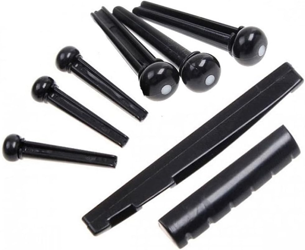 Bridge: RosewoodSaddle+Pin+Nut: PlasticBridge size: 155 * 36.5 * 9mmSize: as shown1. The bridge frame is made of rosewood; the saddle and nut; the shaft is made of plastic, which is very 2. It can perfectly transmit the acoustic guitar sound3. The adjustable shaft can be adjusted to suit the distance between the strings and the fingerboard4. A great alternative to your acoustic guitar5. Suitable for six-string acoustic guitarNote:Due to the different monitor and light effect, the actual color of the item might be slightly different from the color shown on the pictures. Thank you!Please allow 1-2cm measuring deviation due to manual measurement.Quantity : 1 set