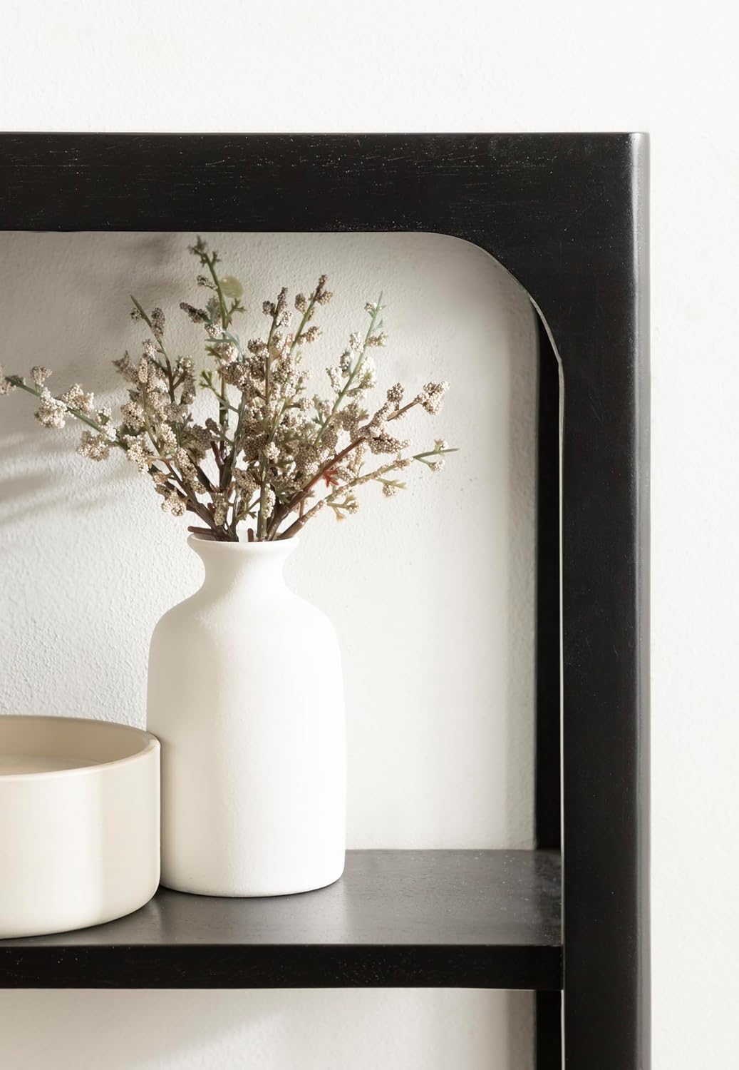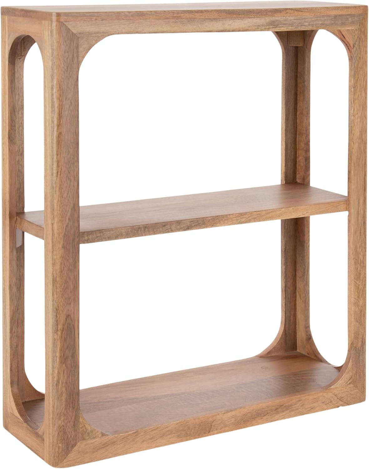 Create a sophisticated wall display that takes inspiration from modern design with the wooden Dahl wall shelf from Kate and Laurel. Indulge in the clean curvature and minimalist design with its solid mango wood construction. Due to this mango wood design, each Dahl shelf features natural wood grain that makes each piece one-of-a-kind. The overall dimensions of the Dahl tiered wall shelf are 18 inches wide by 6.5 inches deep by 22 inches tall. The clean and straightforward design and modern black finish look excellent installed in various living spaces, such as the living room, bedroom, entryway, bathroom, or dining room! You could also use the tiered design to create a unique bookshelf option for small novels and other books. Each Dahl wall shelf features metal keyhole hangers attached to the back of the frame for quick and easy installation in no time. The open, airy design of this wood shelf provides your space with plenty of storage without encroaching on your wall.
