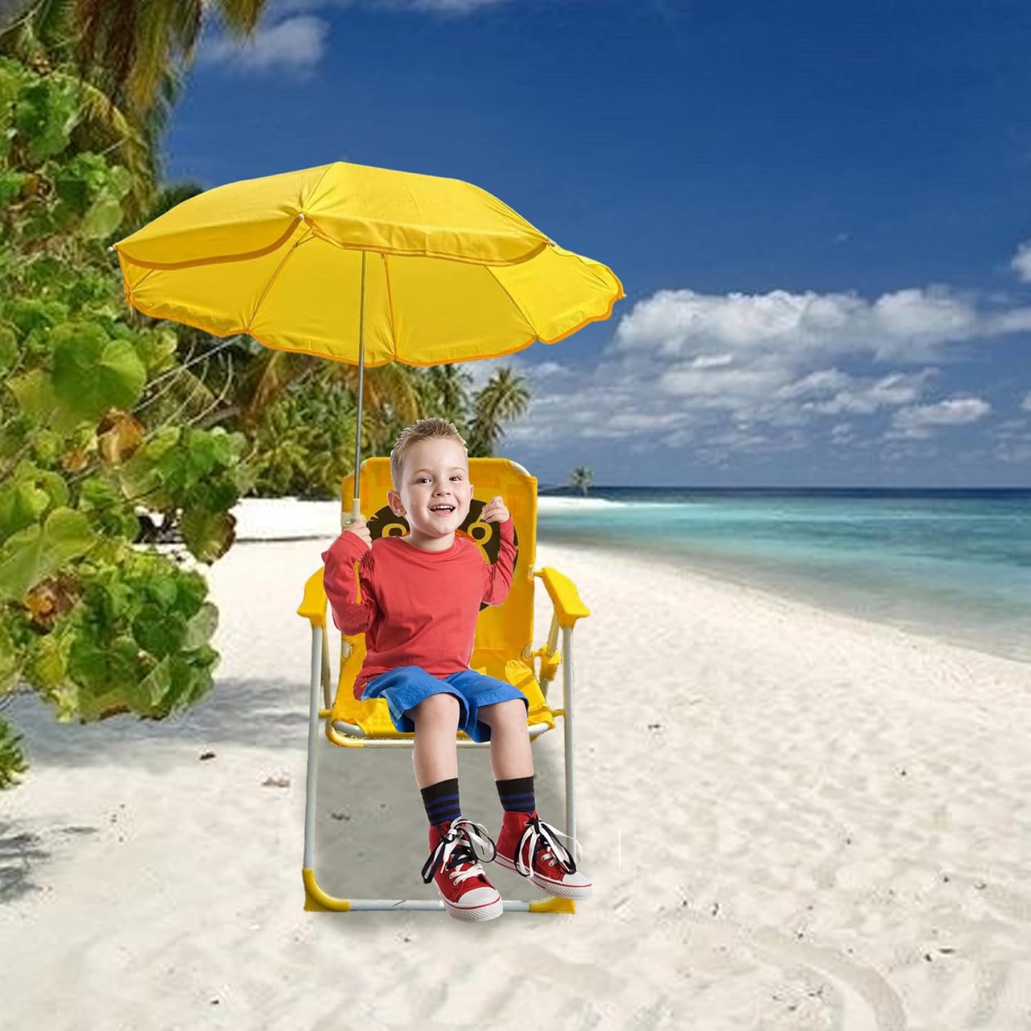 Description: Kids Beach Chair with Umbrella, Foldable & Detachable Portable Oxford Cloth Cute Kids Beach Chair with Canopy for Outdoor Summer perfectly combines comfort, portability, and sun protection for children during adventures; featuring a detachable umbrella canopy for excellent shade and UV defense, this kids beach chair with canopy shade is crafted from stable, breathable Oxford cloth to keep kids comfortable on hot days, while its foldable design and lightweight frame make it easy to carry and store for trips to the beach, park, or camping; specially sized and designed with a cute appearance for children, this chair with umbrella and shade is ideal for outdoor summer use, including lawn relaxation, picnics, or camping, ensuring safe, comfortable seating wherever your kids play. Features:. Kids Beach Chair. -Color: Yellow. -Material: Metal, Oxford Cloth. -Size: about 35x37x51 cm/13.78x14.57x20.08 inch. Note:Manual measurement, please allow slight errors on size.The colors may exist slight difference due to different screens. Package Including 1 x Kids Beach Chair