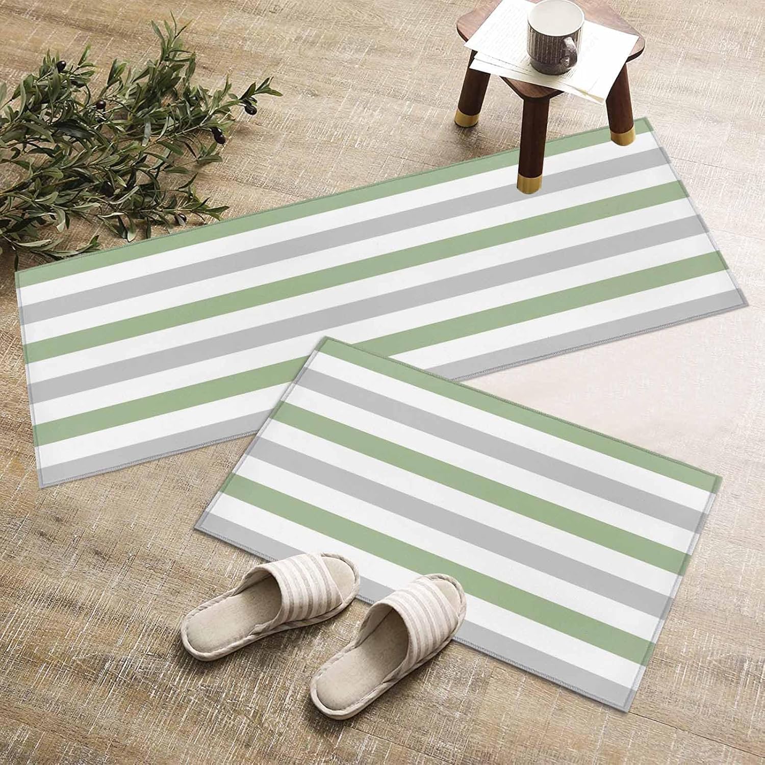 Kitchen Rugs DetailsA relaxing kitchen room environment can make your relax when doing a busy housework, and no one likes a bad cooking experience. Z&L Home Kitchen rug and mat set brings you a comfortable living experience that makes your home beautiful and personal.Absorbent Indoor CarpetOur washable standing mat is made of felt material, which has good bonding performance, tight organization that is not easy to loosen. Used as a floor mat, It can not only absorb water, but also filter out the dirt on the feet, which is easy to clean. Flexible quantity optional❥We offer 1-piece and 2-piece accent carpet set to meet your diverse needs. The absorbent floor mats are suitable for indoor places such as kitchen, porch, hallway, bathroom, bedroom, living room, dining room, nursery, office, laundry room, etc.Non-Slip Floor Mat❥Our rectangular kitchen rugs and mats set are designed with a non-slip rubber backing that enhances friction with the floor to prevent it from moving. The non-slip rubber dot backing do not hurt the floor and can be widely used on any floor such as wooden floors, ceramic tiles, ceramics, marbles, etc.❥In addition, the soft area runner rug set provides protection for the floor from falling sharp cutlery or fragile bowls. Diversified designs and color combinations are suitable for any decoration style, never outdated and can be used for a long time. Personalized non-slip kitchen rugs are also the perfect gift choice for family/friends during Mother's Day, Memorial Day, Flag Day, Independence Day, housewarming, wedding and other holiday.WARM SERVICEBecause of the folded packaging, the kitchen floor mat you receive will have creases after transportation, please don't worry, put it flat and press it with a heavy object for 2-3 days, or light ironing at low temperature to eliminate shipping creases.