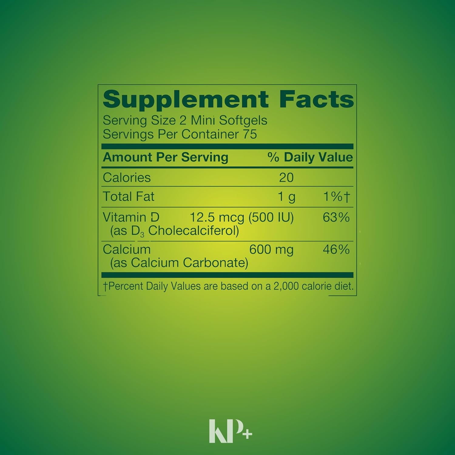 KP+ Calcium Mini 600 mg Plus Vitamin D3 12.5 mcg (500 IU) is a high-quality daily supplement formulated to promote strong bones and healthy teeth.* Calcium is one of the most important minerals for maintaining skeletal structure, and Vitamin D3 plays a critical role in helping the body absorb and utilize calcium effectively.* Together, they support overall bone strength and help maintain normal bone density as part of a healthy lifestyle.* Adequate calcium and vitamin D intake throughout life may help reduce the risk of osteoporosis—a condition associated with weak and brittle bones.* These convenient mini softgels make it easier than ever to get your daily bone-supporting nutrients without the hassle of large pills. Whether you’re looking to maintain bone health, support teeth strength, or simply ensure sufficient calcium intake, KP+ Calcium Mini is a smart addition to your wellness routine.* ⚠️ These statements have not been evaluated by the Food and Drug Administration. This product is not intended to diagnose, treat, cure or prevent any disease.