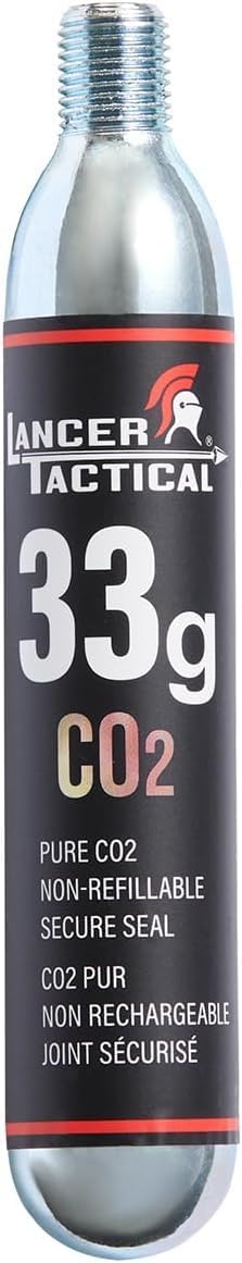 Lancer Tactical 50 Pack of 33g CO2 Cartridges for Airsoft, Airguns, Automatic/Manual Inflatable Life Jacket Lifejacket Life Vest Waist Pack Belt Lifesaving PFD 1/2 Threaded