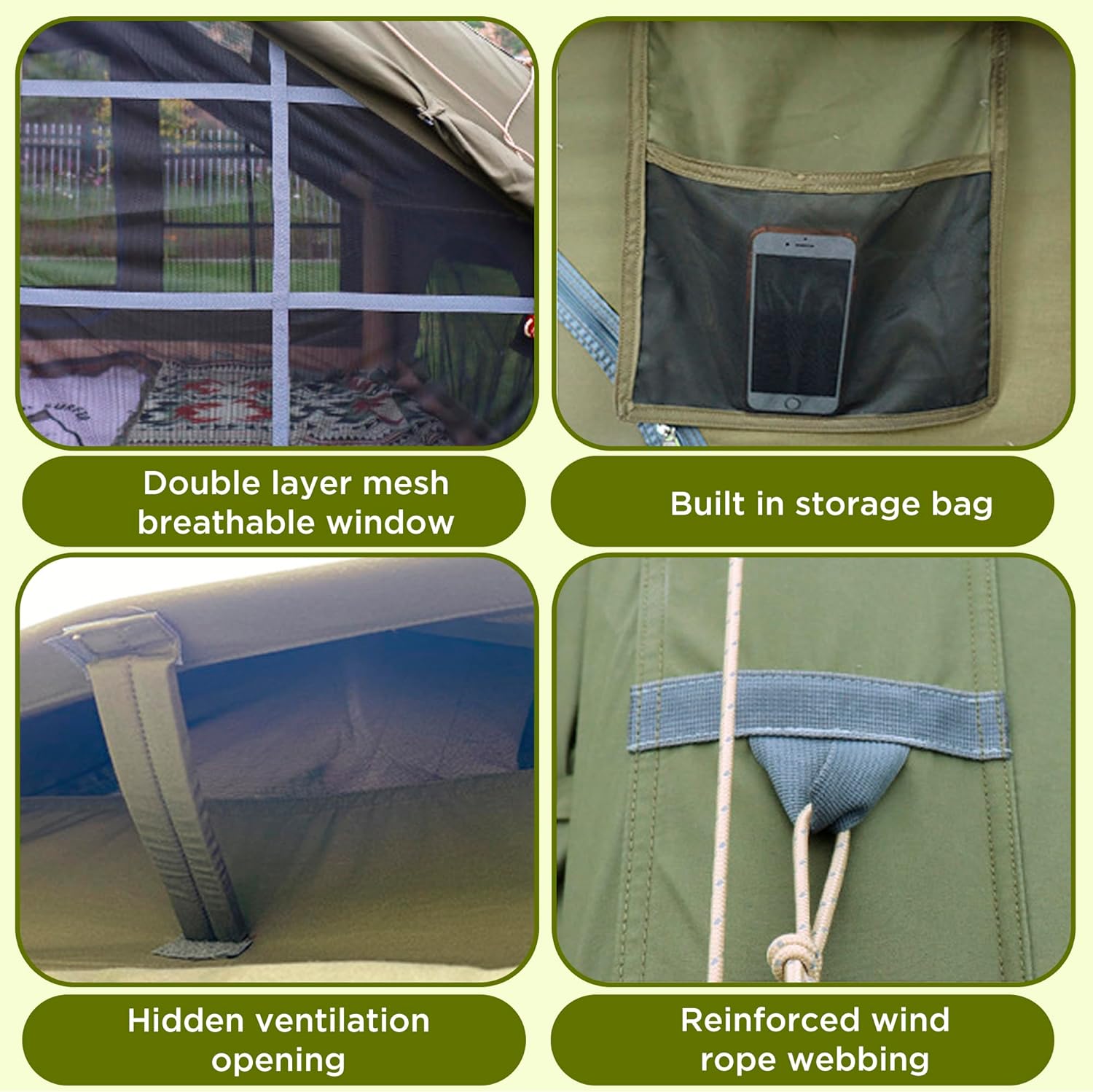 | Additional Features | Quick Setup Rainproof, windproof, breathable, UV resistant, sturdy and durable |