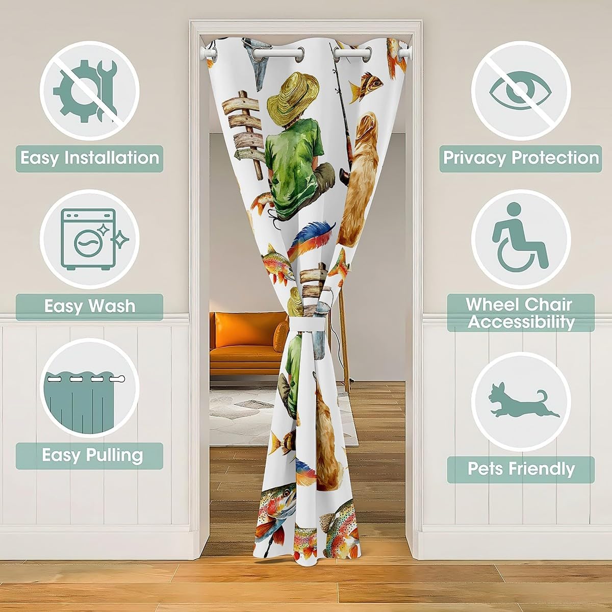 Package Include: 1 Door Panel 100% polyester, soft, block out 30% to 50% sunlight Size Information: 6 Sizes for you to choose 34W x 80L inch 42W x 80L inch 52W x 80L inch 60W x 80L inch 42W x 84L inch 52W x 84L inch Occasion: Used us door curtain, wall tapestry, window drapes. Suitable for home, office, restaurant, dinning area, windows, kitchen, toilet, bathroom, bedroom and etc. Washing instructions: Hand wash,do not bleach. Warm Tips: Not blackout curtains or light blocking curtains or energy saving curtains. Patterns are printed on one side. Manual measurement, please allow an error of 1 to 3cm.