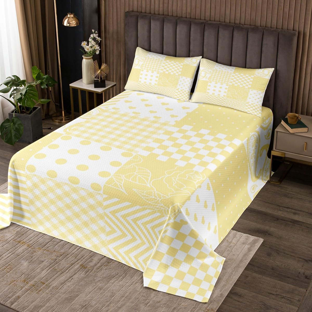 Package Include: Bedspread and Pillowcase. Makeover your bedrooms every season with our bedspread! Perfect item for your room, girls boys youth room, master bedroom. Size Information: Twin size quilted bedspread 68"W x 90"L and 1 quilted pillow sham 30"W x 20"L Queen size quilted bedspread 90"W x 90"L and 2 quilted pillow shams 30"W x 20"L King size quilted bedspread 104"W x 90"L and 2 quilted pillow shams 36"W x 20"L Useful and practical: A luxurious product for homes, dorm rooms, hotels, guest rooms. Practical to use for being polyester, feels like cotton which is Super Soft and Breathable. No chemicals used, No dye substance harming the health of you or your family. Unique design: Vivid Colors won't fade thanks to new 3D digital printing methods. These unique designs match well with various color palettes of your rugs, curtains, headboard, furniture, and all other decor accessories. Personalized: As manufacturers of digital printed home textiles, we follow current trends and bring you the latest home fashion. More Decor: Search our store to get more christmas theme, new year theme, autumn fall theme, any holiday theme, modern abstract, farmhouse rustic theme, simple pattern, garden flowers etc. home decoration. Note: The Bedspread and Pillow Shams are printed on the Front Side Only, the back of them are white colored. Comforter is Not Include in the set. Warm Tips: 1. Please allow 1-3cm error due to manual measurement. 2. Actual color may vary from the color on your screen due to monitor color restrictions.