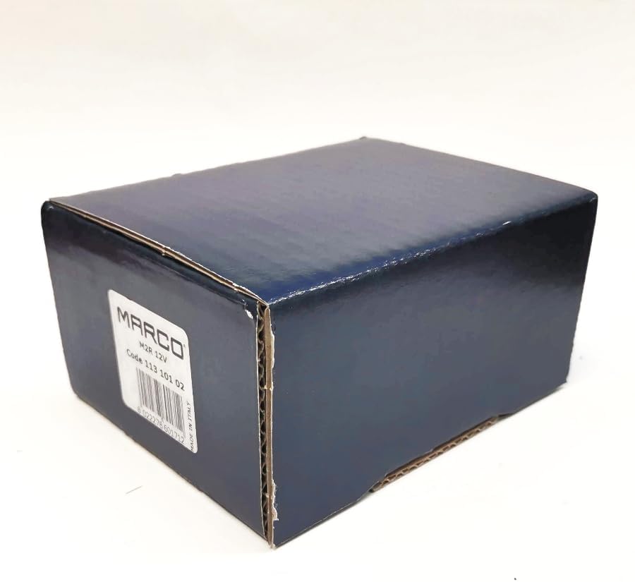 Introducing the Marco M2 Air Compressor, a robust and compact solution for marine and vehicle horn systems. This versatile compressor operates on both 12V and 24V electrical systems, delivering a reliable 1 bar pressure output perfect for powering air horns. Made in Italy, this unit features a durable blue protective housing and sleek black cylindrical design that ensures longevity while maintaining a professional appearance. The compact form factor makes it ideal for installations where space is at a premium, whether on boats, trucks, or other vehicles. The M2 compressor's sturdy construction and precise engineering provide consistent performance when you need it most. Its straightforward mounting system allows for easy installation, while the quality components ensure dependable operation in various conditions. This compressor strikes an excellent balance between power output and size, making it a practical choice for both professional and recreational applications where reliable horn operation is essential.