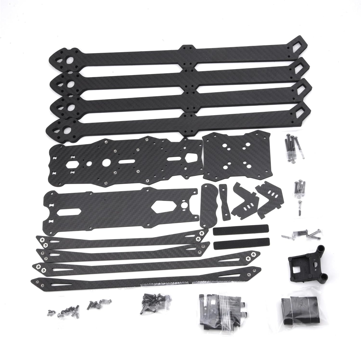 Mark4 V3 Pro 15Inch 680mm Carbon FrameWheelbase: 680mmUpper plate Thickness: 2.0mmBottom plate Thickness: 3.0mmThickness of lower fixed plate: 3.0mmThickness of side plate: 2.5mmFront lip plate Thickness: 2.5mmRear lip plate Thickness: 2.5mmSurrounding reinforcement Thickness: 3.0mmArm Thickness: 8.0mmWeight: 590gmounting spacing:19MMFlight mounting hole spacing: 20*20MM / 30.5*30.5MMVTX mounting hole spacing: 20*20MM / 30.5*30.5MMMotor mounting hole spacing: 21*21MMMotor screw hole diameter: 4MM (please make sure your motor hole is 4mm)Can be adapted to 15inch propellerPackage Included:1Set x Mark4 V3 Pro 15inch 680mm Frame Kit