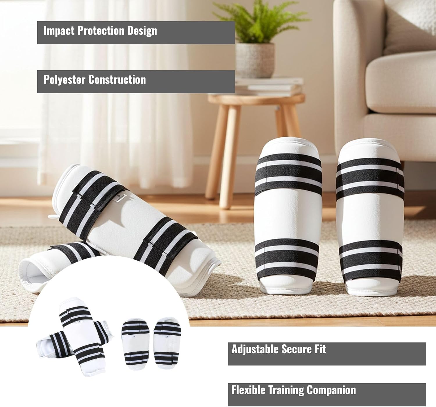 This comprehensive leg and guards set provides reliable protection for martial arts sparring, training, or competitions. Built with high-elasticity polyester and reinforced foam padding, it balances impact resistance with comfort. Adjustable straps ensure a firm fit on forearms and lower legs during movement. Suitable for beginners to advanced athletes, this equipment supports safety and performance. Lightweight at up to 480 g, it is portable and storable. Compatible with standard martial arts uniforms, it is ideal for training, competitions, and defensive techniques. Select the appropriate size for consistent protection in practice.