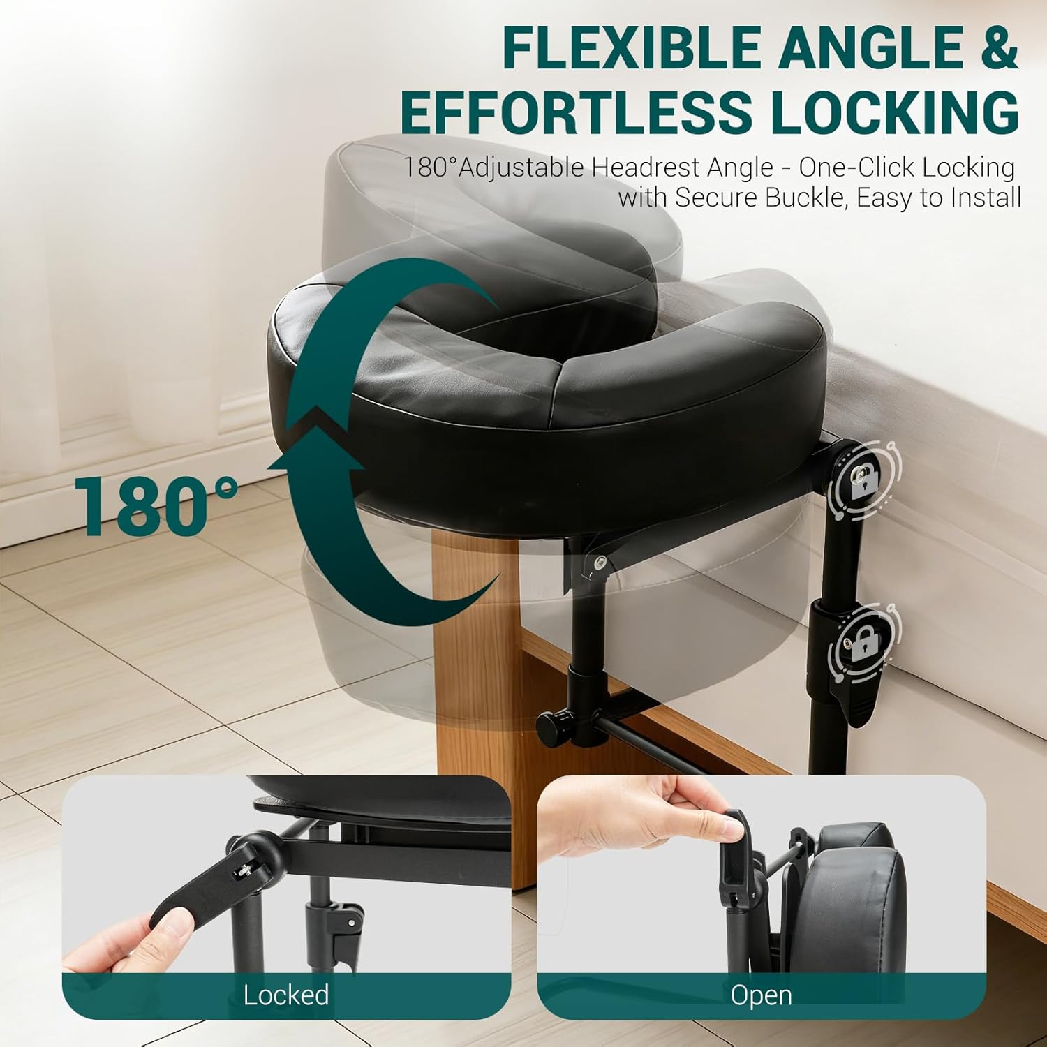 About Us:Enjoy home massage and beauty experiences! Experience the convenience of massage and rehabilitation in a comfortable space. Whether you are a professional or want to bring the spa experience home, try our bed massage headrest today!Specifications:Material: PU leather, memory foam, plastic, aluminum alloyColor: BlackPackage includes:1 x Memory face pillow1 x Under-mattress support base1 x Adjustable Face Cradle1 x Height-adjustable bracketTips:Slight variations in dimensions and weight may occur due to manual measurement.Minor color differences might be observed due to different monitor settings.