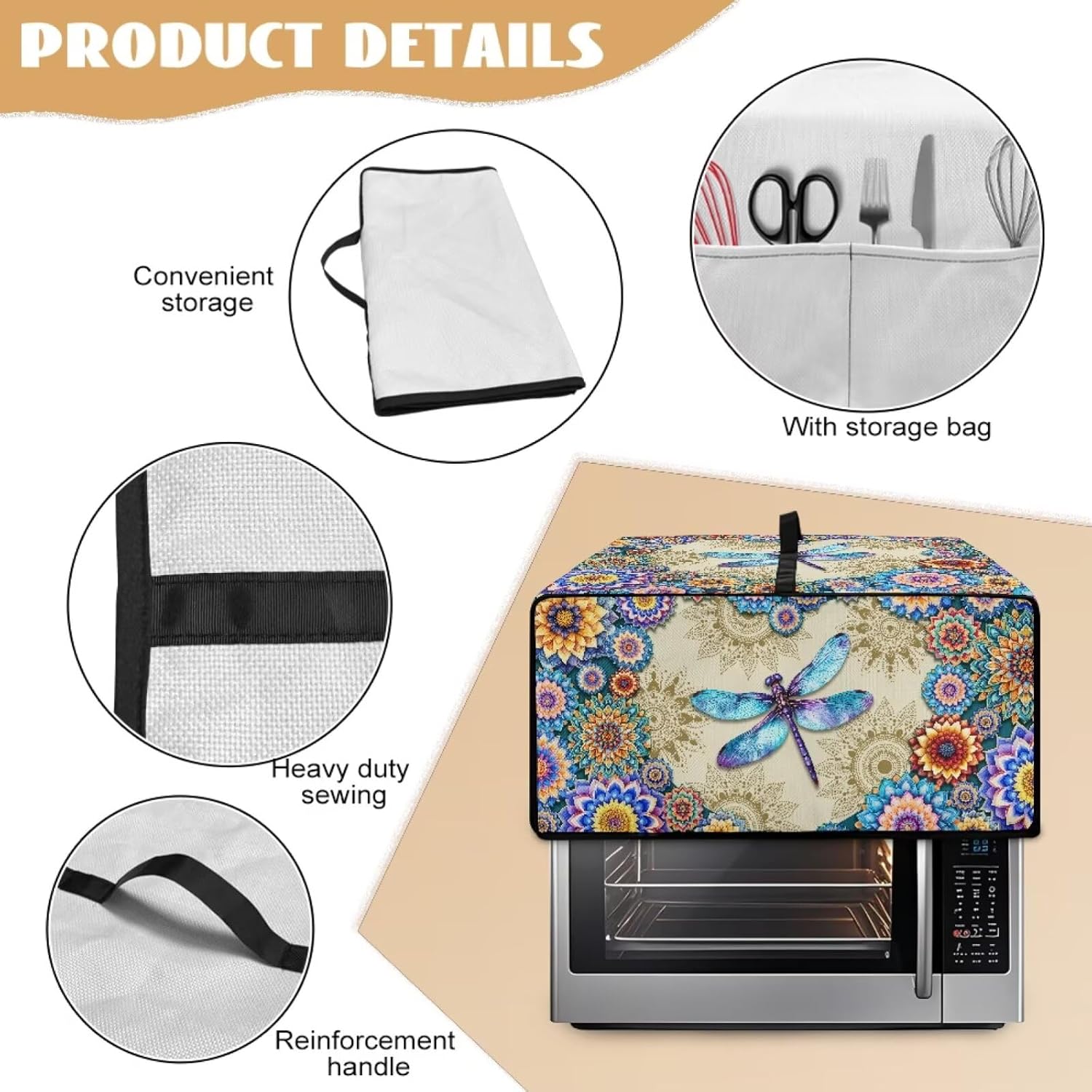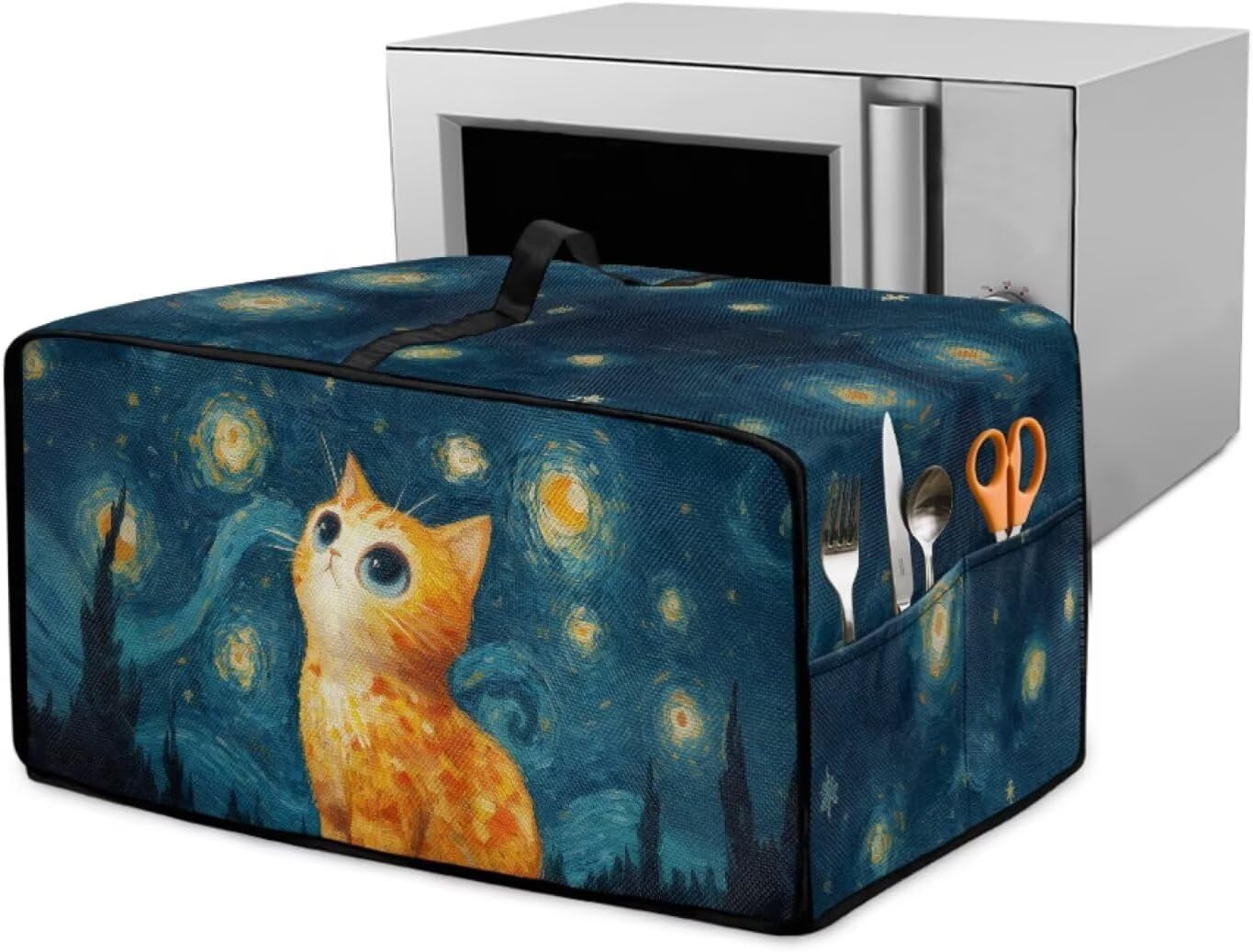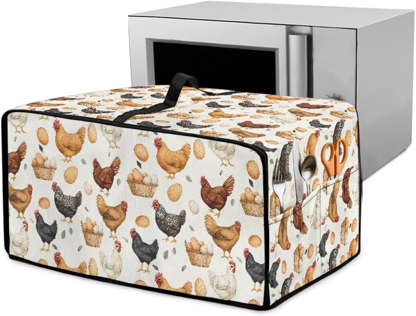 Garucesta - Toaster Oven Dust Cover with Side Pockets – Dustproof, Protective & Easy to Clean Dimensions: (D x W x H) -Small: 14.5 x 18.5 x 9 inches / (36.82 x 46.9 x 22.85 cm) -Medium: 16.5 x 20.5 x 10 inches / (40.9 x 50.06 x 25.39 cm) -Large: 18.5 x 22.5 x 13 inches / (46.98 x 57.15 x 33 cm) Material: Made with polyester material, this countertop oven cover keeps your appliance protected from the wear and tear of routine use, while adding a sleek and contemporary look to your kitchen decor Easy-to-use Top Handle: Designed with a top handle, this small appliance cover allows you to easily lift or replace it on your toaster oven, making it a convenient and efficient addition to your kitchen Practical Side Pockets for Extra Storage: Featuring two side pockets, this toaster oven cover provides additional storage space for small kitchen items like oven mitts, utensils, and even recipe cards, helping you keep your kitchen neat and everything easily accessible Easy to Clean and Machine Washable: This microwave oven cover is both easy to wipe clean with a damp cloth and machine washable for a deeper clean. Whether it's everyday dust or a more thorough cleaning, it’s designed for both convenience and practicality Stylish & Elegant Design: The modern design of this kitchen appliance cover enhances the elegance of your kitchen. It’s available in a variety of colors and patterns that will complement your kitchen decor, providing both functionality and style