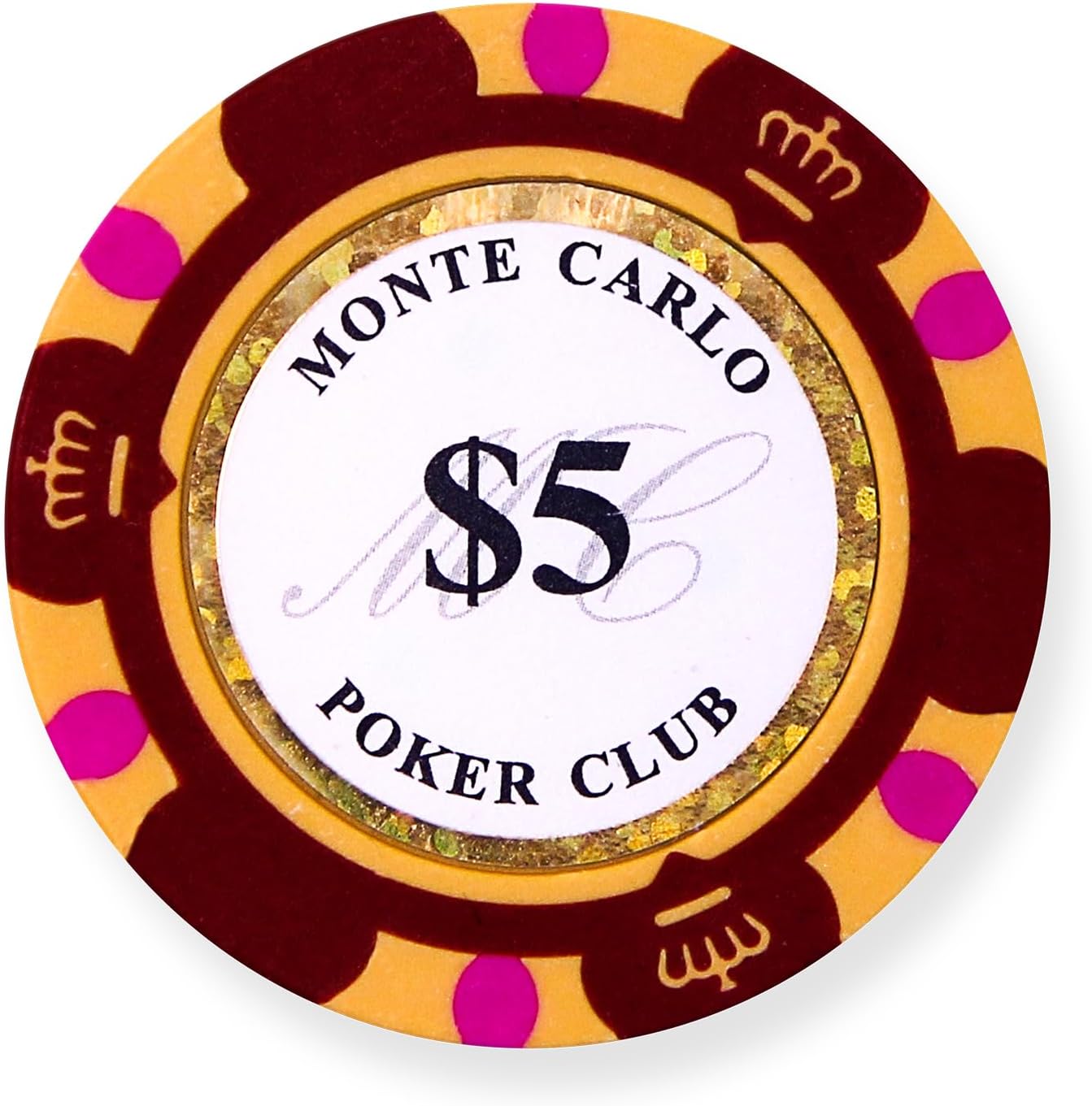 This is our 14 Gram Casino Grade Heavy poker chip Set with Monte Carlo Poker Club design. 500 total chips is enough for any 6-8 player home games. The chips feel decent and sound great.