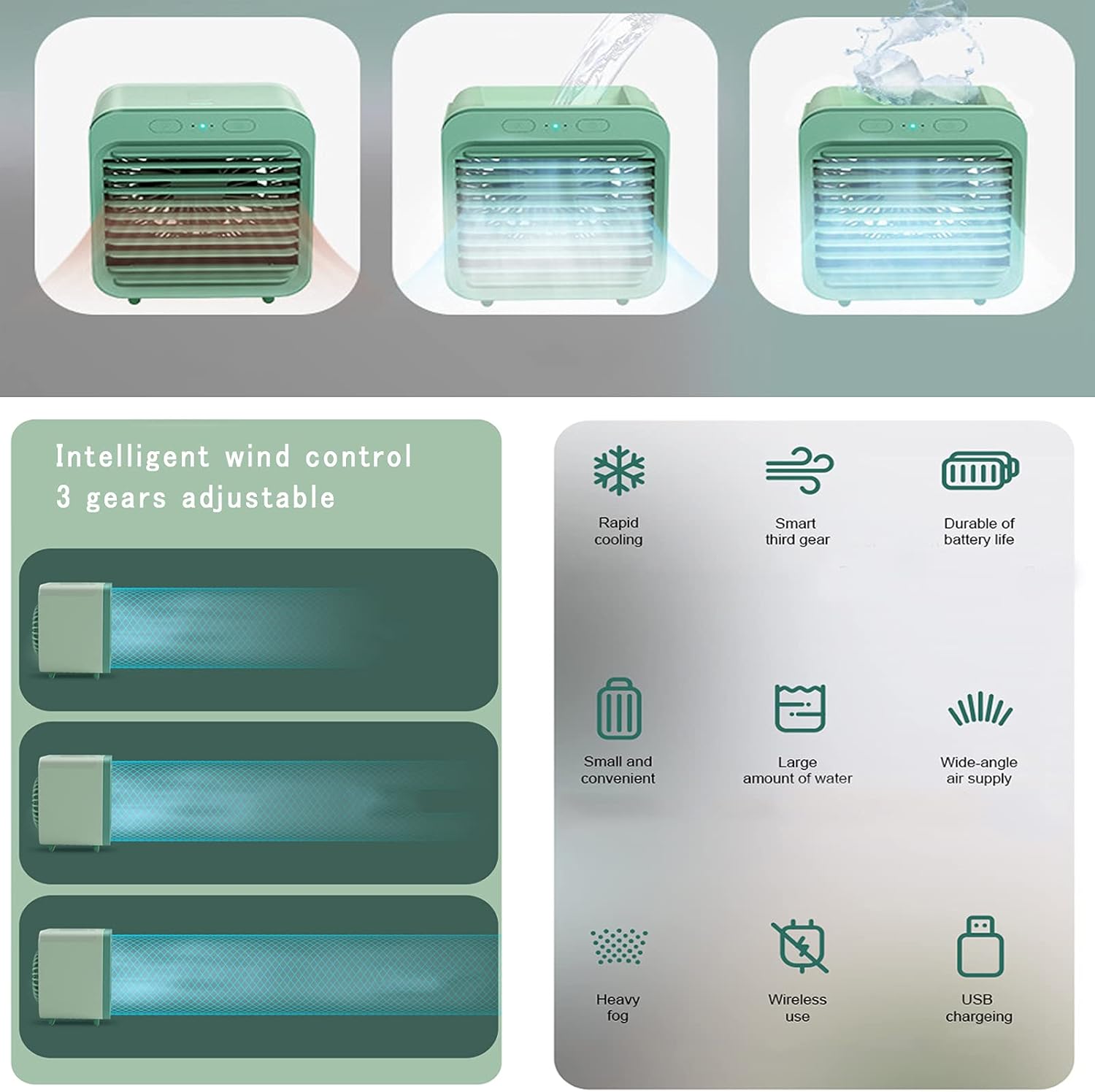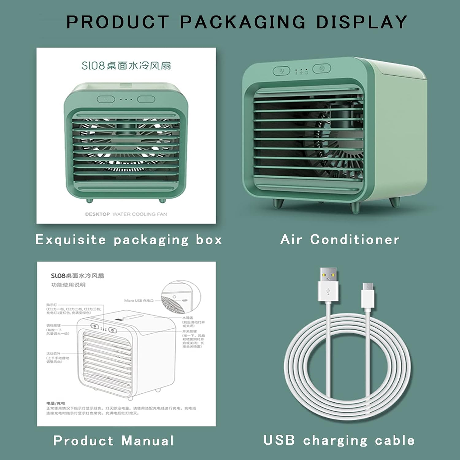 In the hot summer, you need a portable and compact air cooler to provide you with a cold summer.Our multi-functional portable air cooler is perfect for your requirements. Specifications:Power supply mode: USBNoise: 36dB or lessBuilt-in battery capacity: 2400mARated voltage: 5VRated power: 4WWind speed gear: 3Charging/life time: 3/6Whether built-in battery: YesMode of operation: mechanicalStop automatically when falling: not supportedWhether to support charging: supportProduct feature: water cooling fanCategory: MultifunctionalAir supply mode: no page turning, no head shaking Features:Enjoy Cool, Clean Air Anywhere.Simply fill with water, plug it into any standard wall outlet or USB port and enjoy.It runs up to about 10 hours per fill.This whisper-quiet fan and soothing night light make it perfect to use throughout the night for a comfortable sleep.It?s lightweight & even convenient for travel! Great for outdoors too! It?s not just safe to use but energy efficient.This personal space air cooler actually cools the air around you, where you need it most, while using the size and power consumption of a small fan. Packing list:1 x Air Cooler1 x USB Line1 x Manual(Chinese)