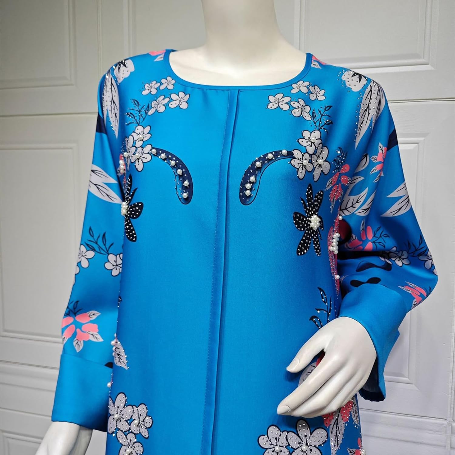 Features: Women kaftan dress prayer dress craft from polyester, Soft, breathable, and stretchy for comfortable wearing. Loose long sleeve, make it comfortable to move around, unique flower print and rhinestones pearls embroidered decorations, add touch of elegant to your clothing. Long length Women robe prayer dress full length kaftan dress, from the shoulders to the ankles. Suitable for various occasion, such as Festival, birthday, Wedding, outdooors, holiday, dinner party. Great for festivals, religious event, prayers, Arabian banquets and more. Holiday present for mother, sister, friend on birthday, anniversary. This women kaftan dress could be worn alone in hot weather. You can wear warm clothes inside in spring, autumn and winter, with high elasticity, and the size is large enough to look good. Specifications: Color: White; Blue; Gray; Yellow; Component: Polyester Size: See the size chart Weight: Approximately. 500g Note: 1.Please allow 0-1cm error due to manual measurement. 2.Due to difference between different monitors, the picture may not reflect the actual color Package includes: 1Piece Women Kaftan Dress