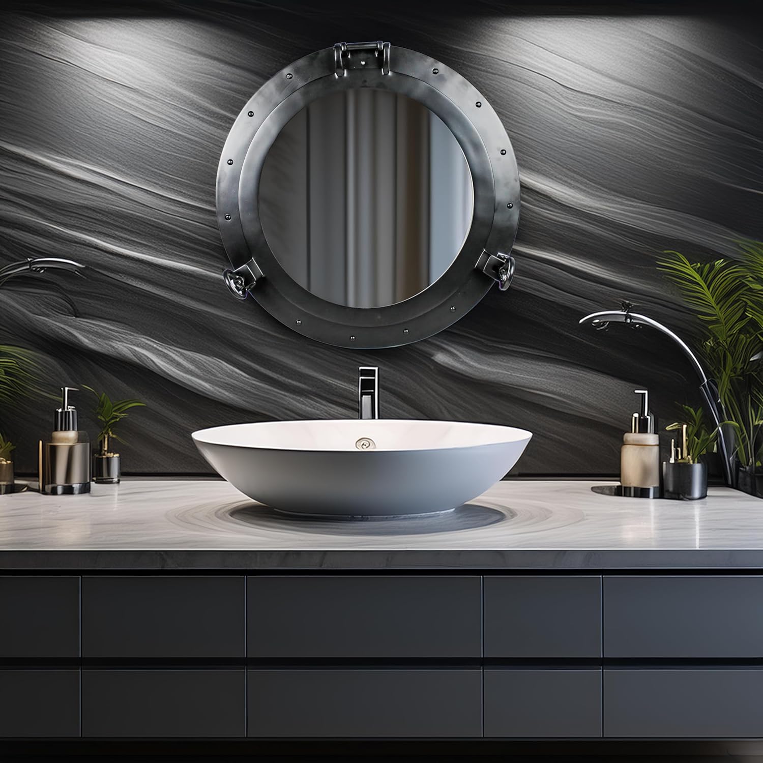 A Porthole, Sometimes Called Bull's-Eye, Is A Generally Circular Porthole Frame Used On The Hull Of Ships To Stream & Admit Light And Air. Though The Term Is Of Maritime Origin, It Is Also Used To Describe Round Portholes On Armored Vehicles, Aircraft, Automobiles And Even Spacecraft. On A Ship, The Function Of A Porthole, When Open, Is To Permit Light And Fresh Air To Enter The Dark And Often Damp Below-Deck Quarters Of The Vessel. It Also Used To Affords Below-Deck Occupants A Limited, But Often Much Needed View To The Outside World. Enlighten Your Wall And Bathrooms With Our Wonderful Finishing Portholes, With The Appealing Finish That Provides A Good With Enough Reason To Have One. Cast & Moulded Out Of Solid Grade Metal, Nautical Portholes Are Truly An Amazing Addition If You Are A Pirate's Admirer. Not Only For Aficionados. Nautical Porthole Could Be Used At Various Places, From Your Beaches Houses To Offices, Bathrooms To Basins. An Ageless Solid Grade Metal Porthole Frame That Will Survive Ages When Treated Accordingly. The Finish On The Porthole Is Sealed And Won't Fade Or Go Away Over The Years Of Exposure. All Portholes Sold By Us Are Actually Openable Portholes With Actual Hinge And Wing Nuts That Keep The Movement Locking. The Wings Are Threaded On The Metal Studs And Winds Down Easily To For Allowing Access Inside And Then For Closure Later. Place This Item In Your Lake House, Bar, Or Any Other Nautical Themed Room You Can Imagine. This Mediterranean-Style Wall Mounting Decor Ornament Is Perfect Choice For Living Room, Home Or Shop, Office, Pirate Themes Room, Seaside Gardens, Patio, Tiki-Bar, Floating Tiki, Nature Adventurous Wild Camps, Vans etc. Possibilities Are Endless & Limitless. Keep Exploring Nagina International For More Such Impressive Wall Decors.