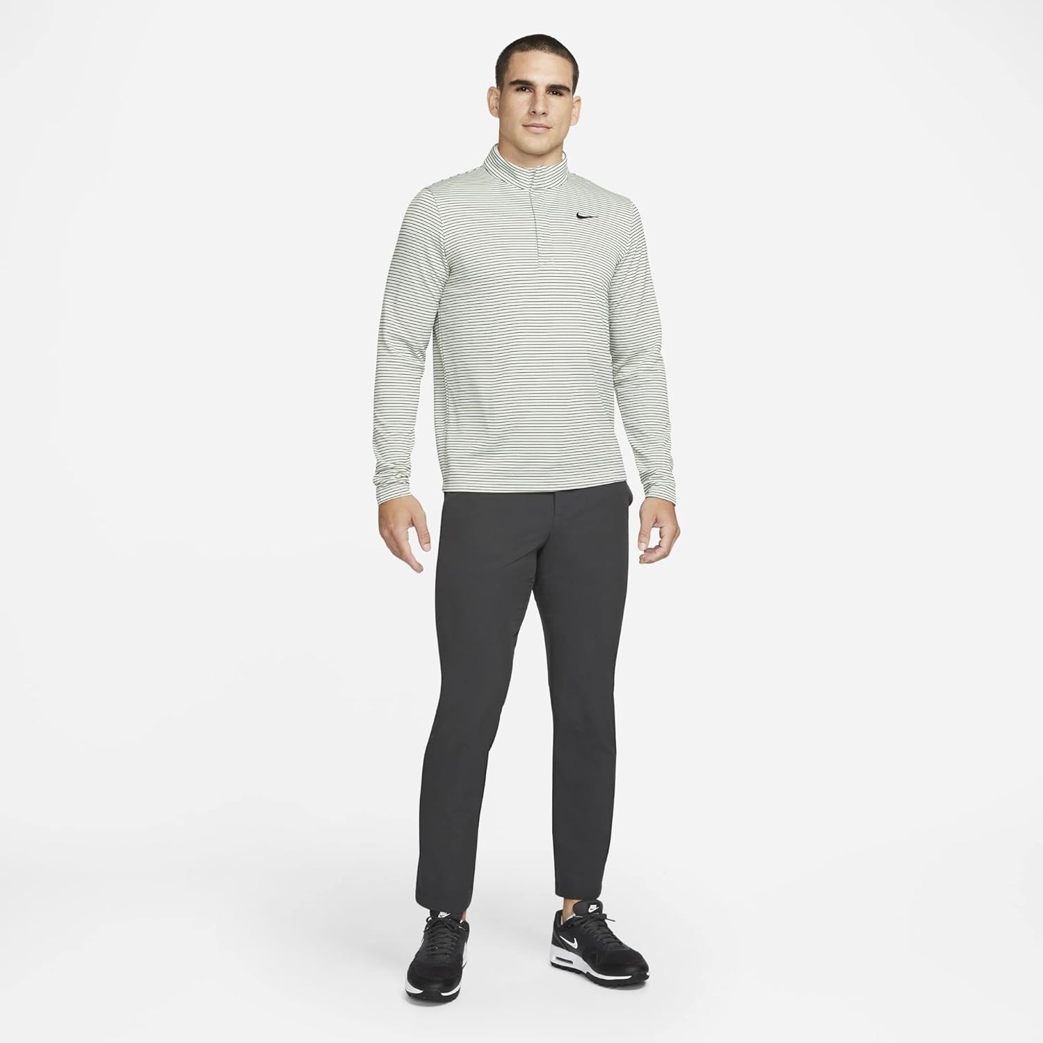 MODERN PERFORMANCE FOR THE ATHLETE Crafted from a stretchy, subtly textured fabric, the Nike Dri-FIT Vapor Pants are designed to let you move freely without having fabric cling to your skin. The modern, athletic design pairs a tailored, slim fit with articulated seams around each knee that allow you to bend and stretch without restriction. Benefits Nike Dri-FIT technology moves sweat away from your skin for quicker evaporation, helping you stay dry and comfortable. Woven fabric stretches so you can move freely. The inside has a subtle texture that helps keep the fabric from clinging to your skin. Grippy tape on the inside of the waistband helps keep your shirt tucked in. V-notch in the back of the waistband gives you extra stretch. Articulated seams along each knee give you plenty of room to move while you bend and stretch. Kick tape is sewed in along the back of each hem to help keep the pants from riding up. Product Details Slim fit for a tailored feel Mesh-lined pockets Hook-and-bar closure and zippered fly Body: 90% polyester/10% spandex. pocket bags: 100% polyester. Machine wash Imported