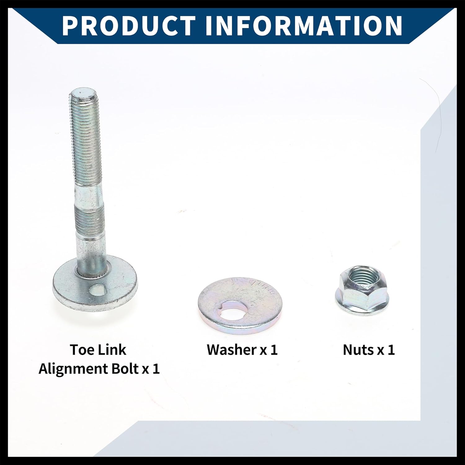 Vehicle Compatibility:for Toyota Highlander 2001-2018for Lexus RX350/RX450h 2010-2022for Lexus RX350L/RX450hL 2018OE Number:4840948030This is not oem product, accessory only.Feature:Color: Silver TonePerformance:Direct replace the broken cam plate toe adjust bolts.Install new cam plate toe adjust bolts, then let the auto parts in it work better.Cam plate toe adjust bolts designed to make the car work well and improve work performance.Made of:MetalInstallation Guide:Located on the front suspension, especially on the rear control arm or toe link, the suspension design varies depending on the vehicle model, and the specific position depends on your vehicle model.What You Get:2 Pcs Front Toe Link Bolt, 2 Pcs Gasket and 2 Pcs Nut