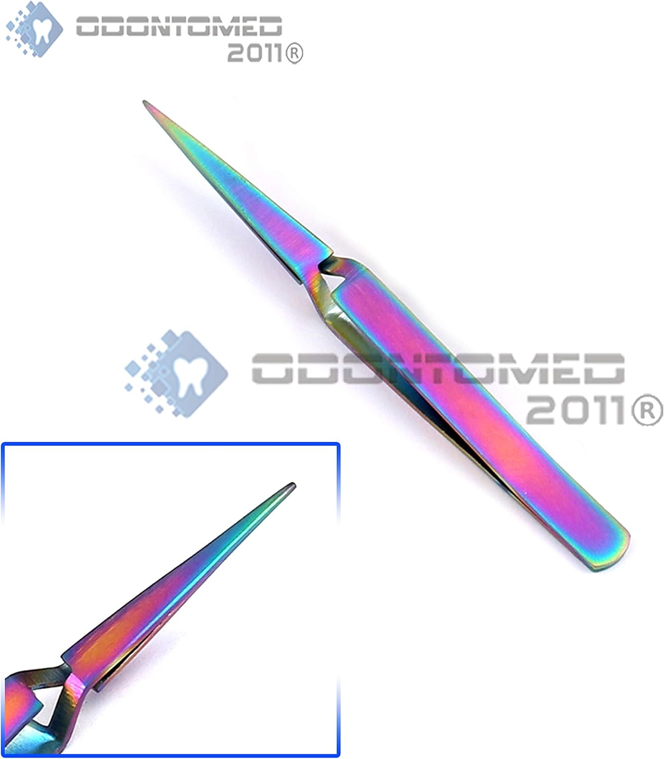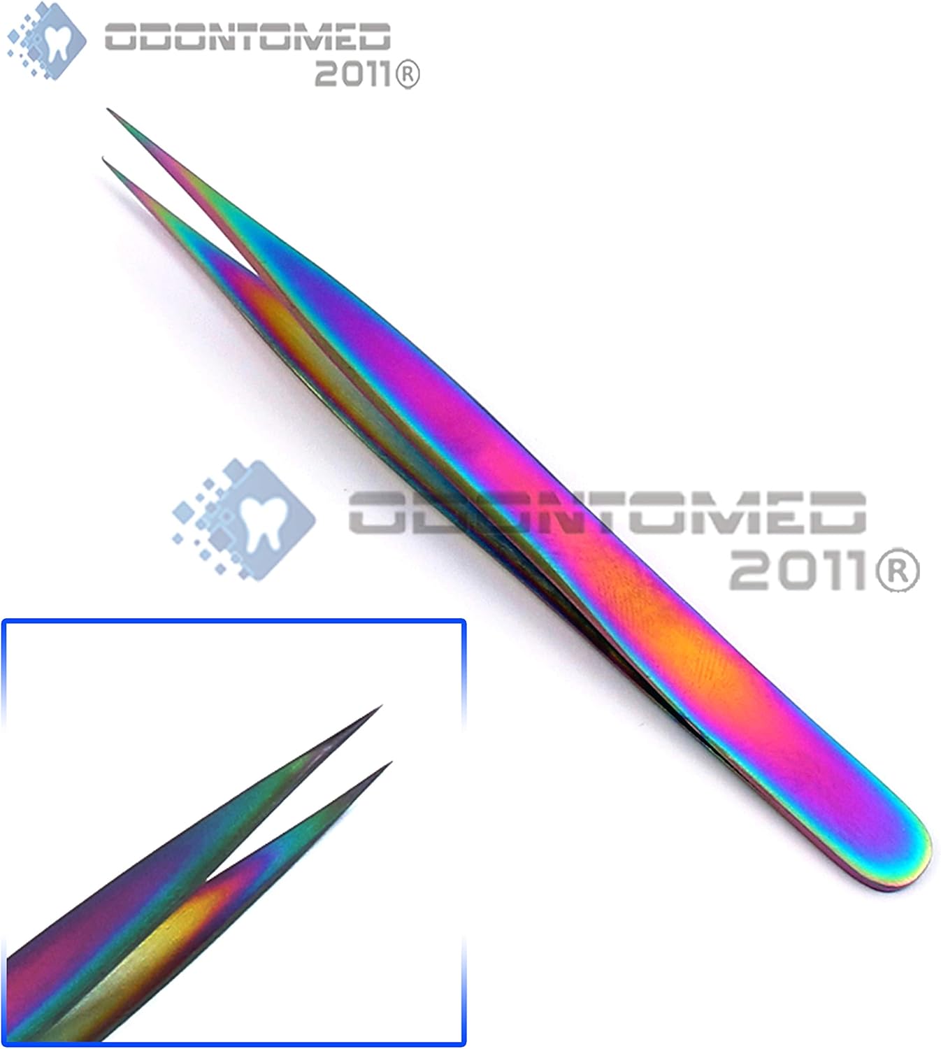 Lot OF 8 Pieces Stainless Steel Multi Titanium Rainbow Color Eyelash Extension Tweezers Pro PackThis Set Includes:*1 Piece of Eyelash Tweezers X type Self Closing *1 Piece of Eyelash Tweezers Strong Curved #7 *1 Piece of Eyelash Tweezers Straight #3 *1 Piece of Eyelash Tweezers Straight A Type #5 *1 Piece of Eyelash Tweezers Angled 45 degree #5A *1 Piece of Eyelash Tweezers Semi Angled #6 *1 Piece of Eyelash Tweezers Pro Straight #8 *1 Piece of Eyelash Tweezers Pro Straight Semi Curved Tip #8A Made In High Quality Stainless SteelOdontoMed2011 Instruments.