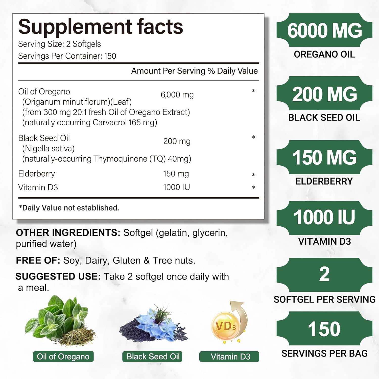 | Special Ingredients | Black Seed Oil, Elderberry, Oregano Oil, Vitamin D3 |