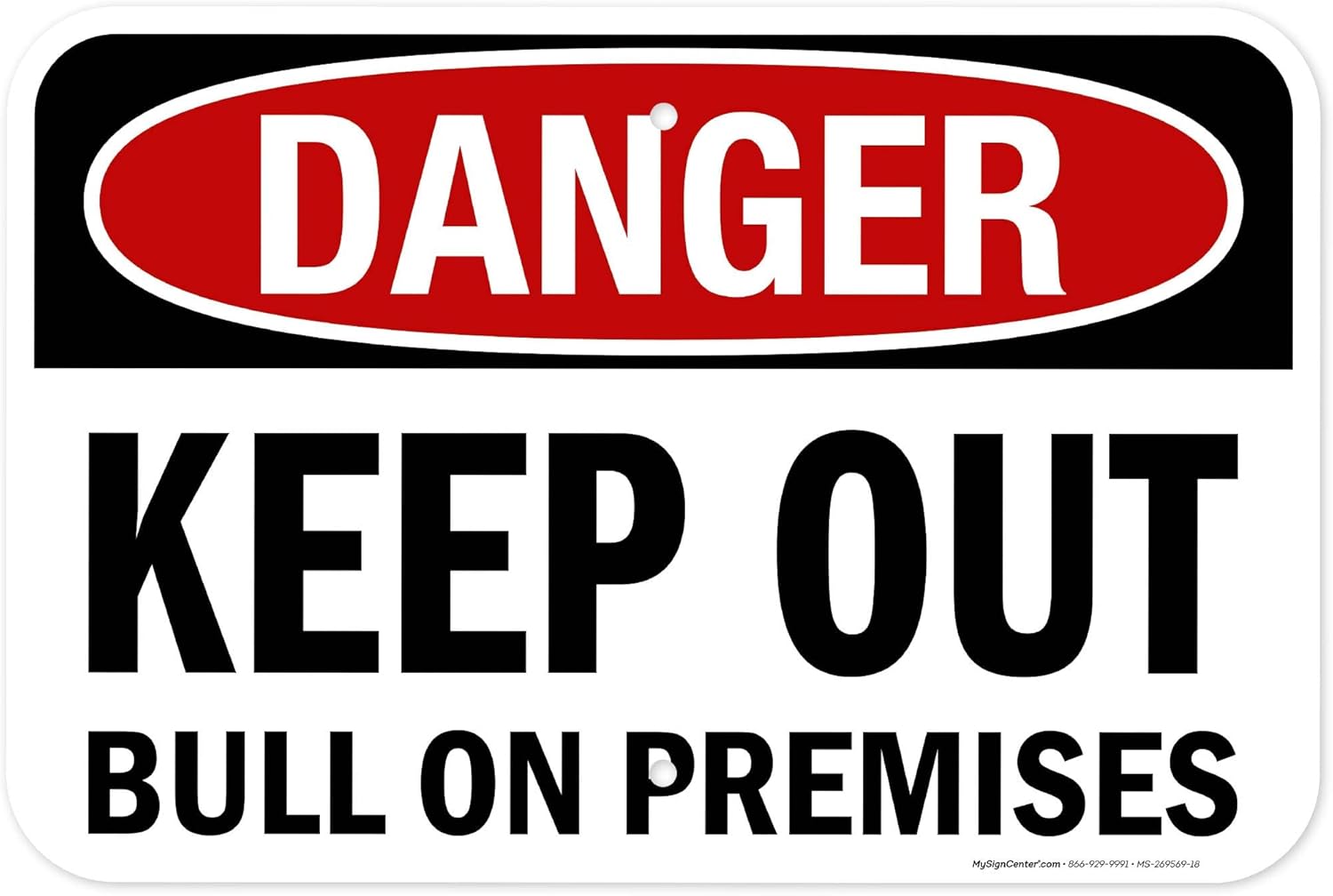 OSHA Danger Keep Out Bull On Premises Sign, 18x24 Inches, 55 mil thick HDPS (high density polystyrene), Made in USA by My Sign Center