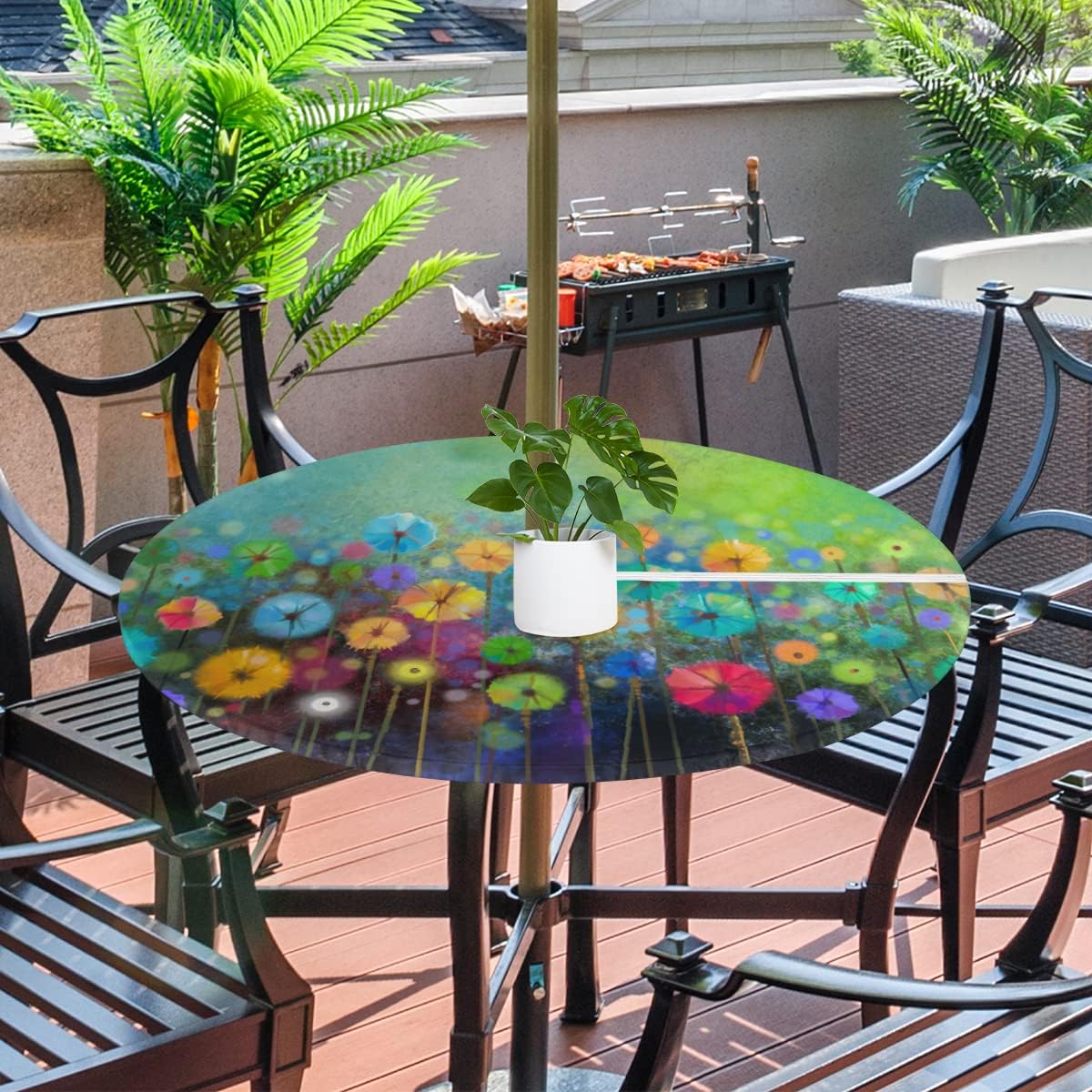 Bardic Outdoor tablecloth are crafted from durable polyester material, with zipper, umbrella hole and elastic edge. Not need to remove patio umbrella to install this table cover quickly. Waterproof, oil-proof, elastic edge can fully cover your table and not to worry about stay free. Will be a good helper to your picnic. Enjoy your leisure timing.2 sizes: Suitable for round tables in the 36-44 inch diameter range; Suitable for round tables in the 45-56 inch diameter range. Please measure the size before purchase.Features:High Quality Polyester Material, durable and fade resistantWaterproof, oil-proof and stain resistantElastic edge will keep fitted and stay free from moving / falling offUmbrella hole and zipper will be easy to install and disassembledPerfect for party, patio, holiday, picnic, BBQ, outdoor and indoorNote:Wipe clean with a damp clothDo not bleachWipe clean with a damp clothTry to rid of wrinkles with a hair dryer on medium heat if needed