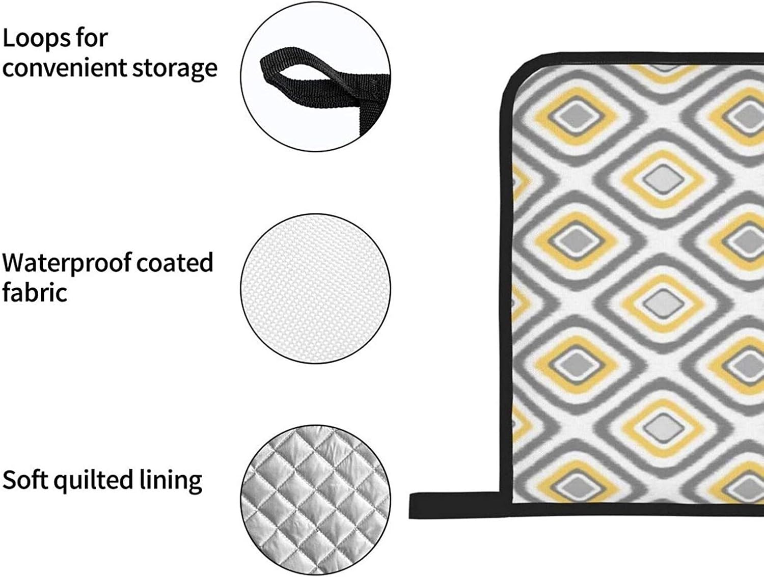 Features 2 oven mitt (11.02 in x 7.28 in) and 2 pot holders (8.07 in x 8.07 in). Made of a durable 100 Percent cotton shell with a 100 Percent cotton fill. The heat-insulating gloves are made of high-quality fabrics, with fine workmanship, thick and durable, anti-scalding and heat insulation. The inner and outer layers are made of waterproof fabric, making it easier to clean. Suitable for uncovering kitchen lids, microwave ovens, oven dishes and outdoor barbecues. These oven mitt and pot holders easy to clean, machine washable cold water dryer safe, tumble dry low. Interior cotton will not come out after wash due to the well sewing.