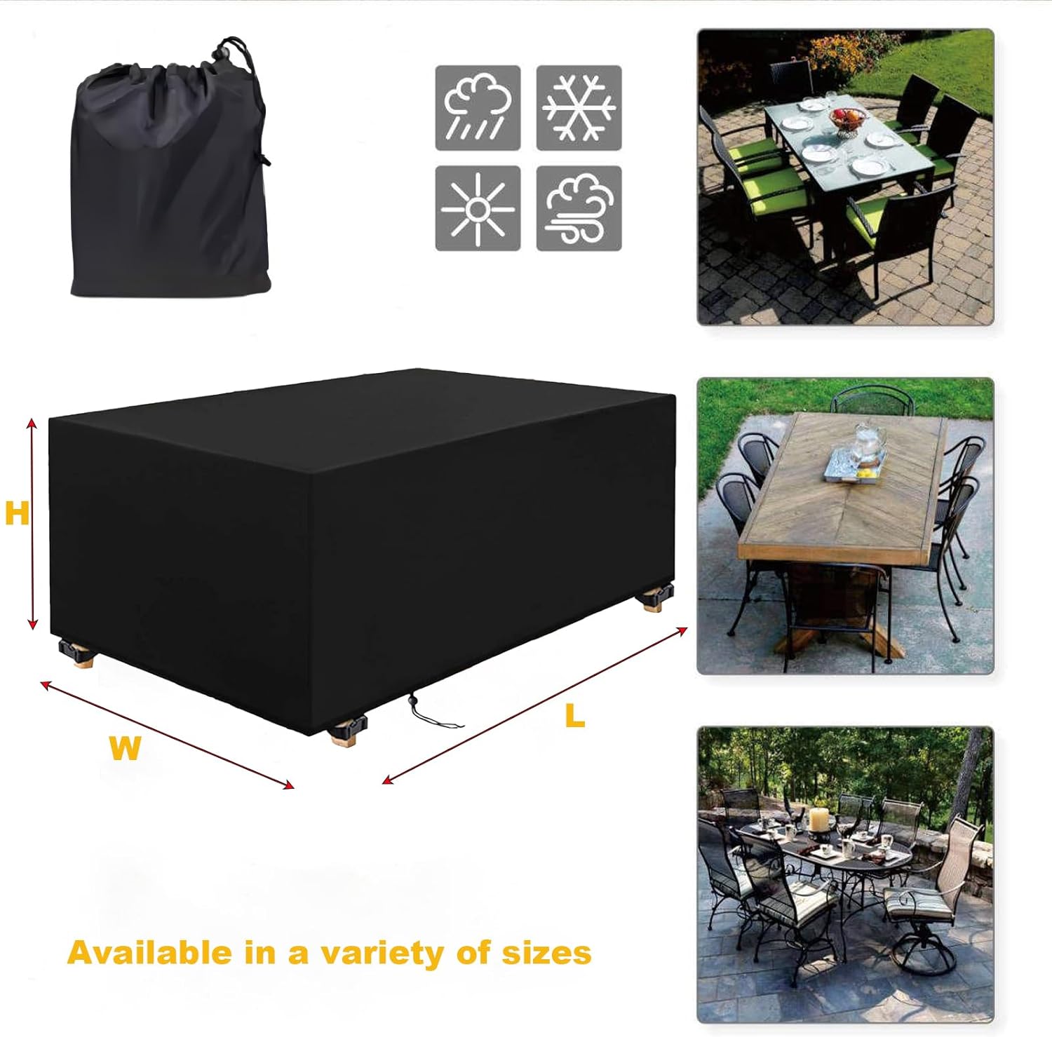 Outdoor Patio Furniture Covers Waterproof, 420D Heavy Duty Oxford Rectangular Patio Furniture set Covers as Couch set, Dining Table Chairs set, Waterproof Patio Furniture Set Covers, Outdoor Table and Chair Covers Rectangular LargePatio Set Covers Waterproof OutdoorOur patio outdoor furniture covers can protect your furniture from rain, sun, snow, dust, leaves, bird droppings, Suitable for all seasons and keeps your furniture looking like new all the time.Patio Furniture Set Covers SizeLength x Width x Height, Outdoor Table Cover Waterproof , Outdoor Furniture Cover Waterproof, Patio Furniture Table Covers Heavy Duty, Patio Chair Covers, Suitable for most Garden Furniture, such as Benches, Table, Sofa, Rectangle Square Round Table, outdoor table covers waterproof rectangle, Furniture Set.Rectangular Table and Chair Patio Furniture Setrectangular outdoor dining table and chairs covers for Protection. The weight is just right, one person can complete the covering and storage independently (we give away Storage bag). We have Patio furniture waterproof covers in various sizes to suit your needs, please measure your furniture before buying.rectangular patio table cover,rectangular patio furniture covers,outdoor patio table cover,outdoor table covers,outdoor waterproof furniture covers,extra large outdoor furniture cover,outside table cover weather proof,outdoor patio chair covers