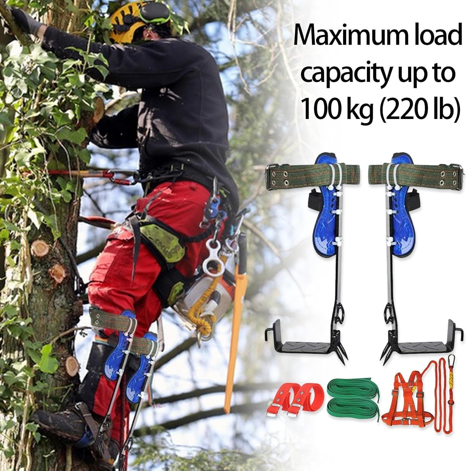 Pole Climbing Equipment Kit - Tree Climbing Equipment Kit,Pole Climbing Equipment Set,Pole Climbing Spike Tree Work Tool, Pole Climbing Equipment, Climbing Accessories with Non-Slip Pedals for Outdoor Activities, Fruit Hunting, Tree TreesThis climbing equipment kit is a must have for outdoor enthusiasts. Designed to make climbing safer and easier in bad weather, this kit is easy to put on and take off, and easy to wash. With fully pressure-distributing technology and a wide range of applications, this kit ensures a comfortable and safe ascent every time.Name: tree climbing spikesMaterial: steel.Product size: approx. 38.5 x 11 cm.Weight:Both jaws + 2 straps + 2 foot bands - 3.5 lbs (1.6 kg).Both jaws + 2 straps + 2 foot straps + safety belt: 5.5 lbs (2.6 kg).Double claw + 2 straps + 2 foot straps + double safety belt: 3.1 kgPackage includes:A: Double prongs + 2 straps + 2 foot strapsorB: Double prongs + 2 straps + 2 foot straps + 1 seat belt.orC: double prongs + 2 straps + 2 foot straps + 1 double safety beltNote:Due to lighting effects and camera angle, the item's color may be slightly different from the pictures.Due to manual measurement, the product size may have a tolerance.